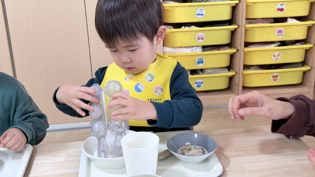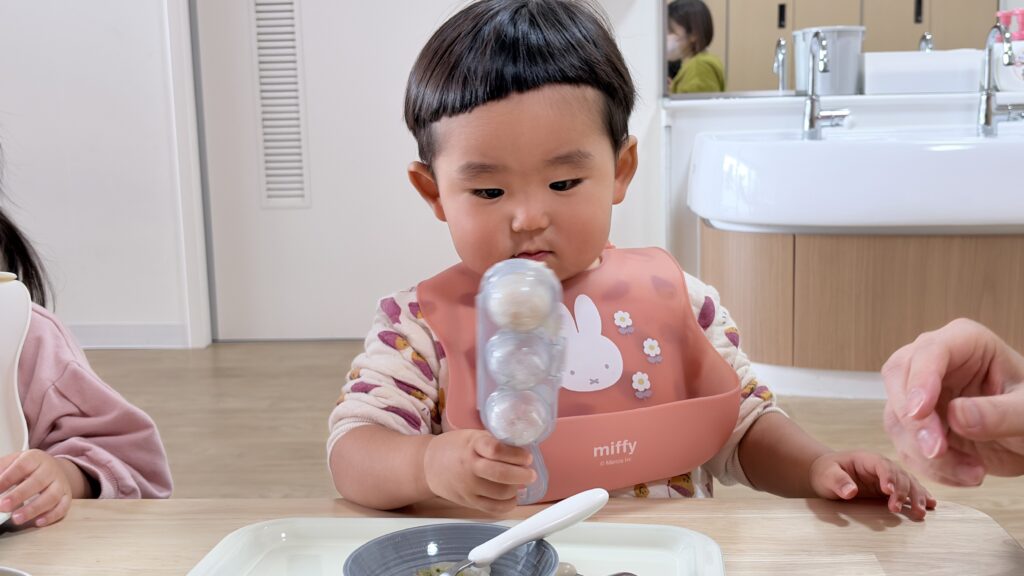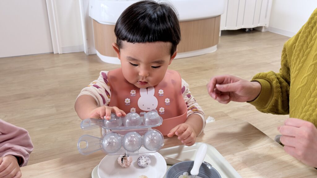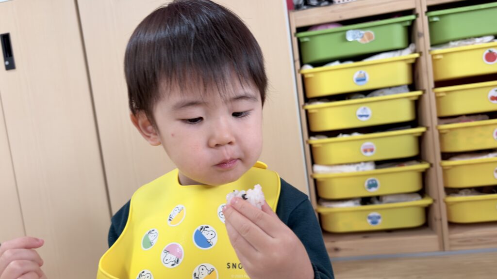 先日、1.2歳児クラスではおにぎりバイキングをしました🍙✨
