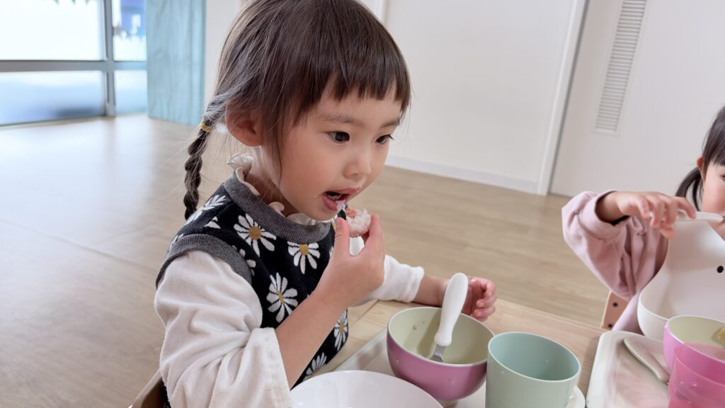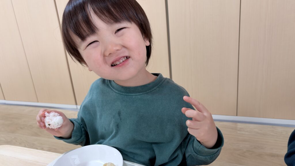 自分で選んで、作ったおにぎりは格別だったようでたくさんおかわりをして、いつも以上にいっぱい食べた子どもたちでした♡