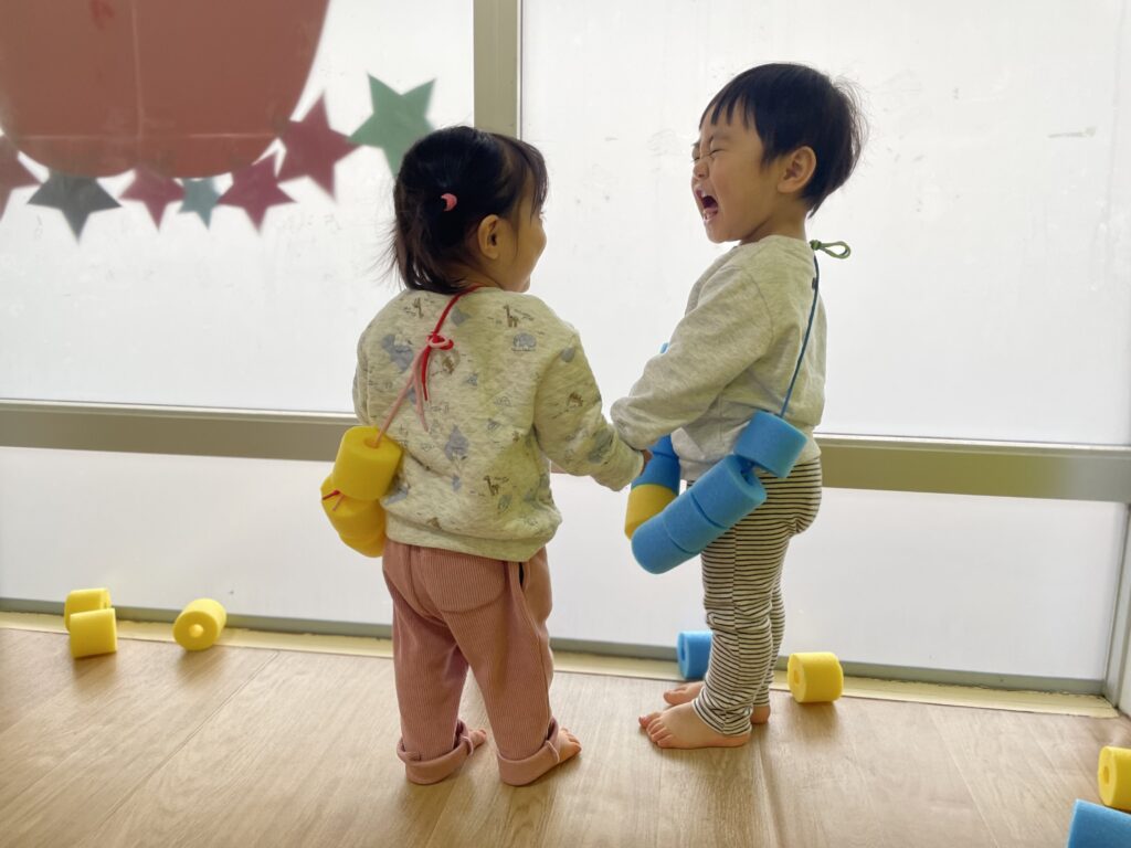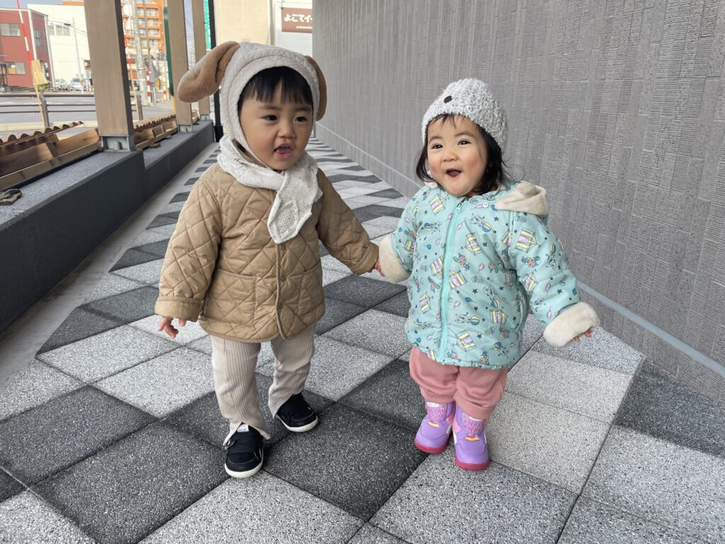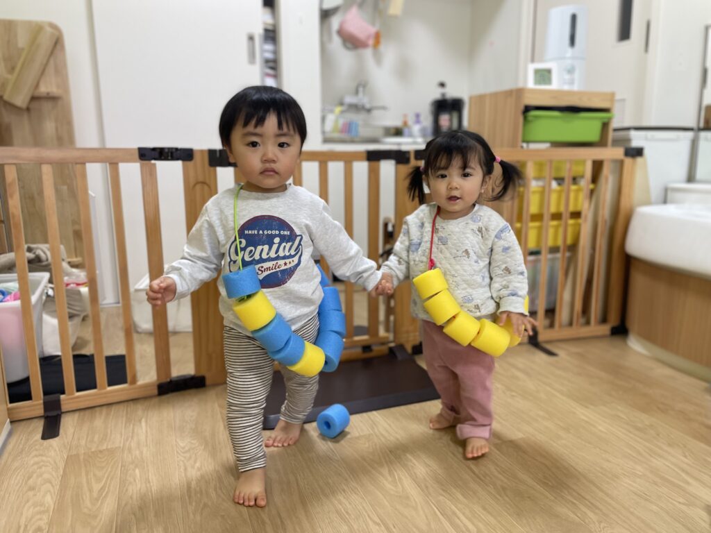 4月はまだハイハイやつかまり立ちだった2人ですが、あっという間に走ったりジャンプしたりしながらたくさん体を動かして遊べるようになりました✨