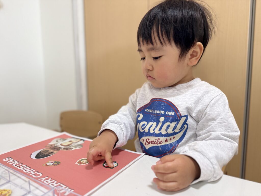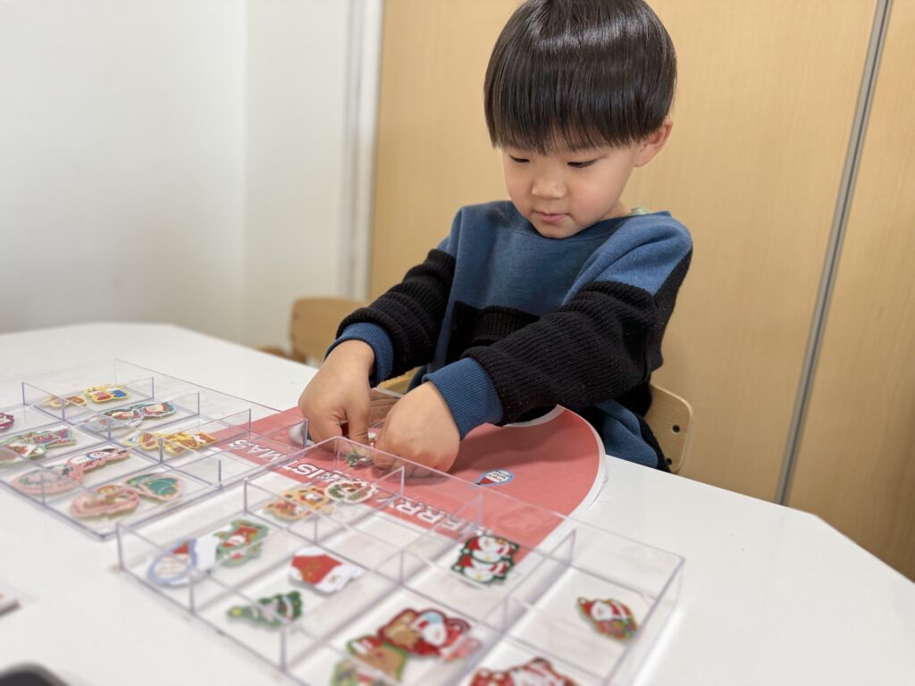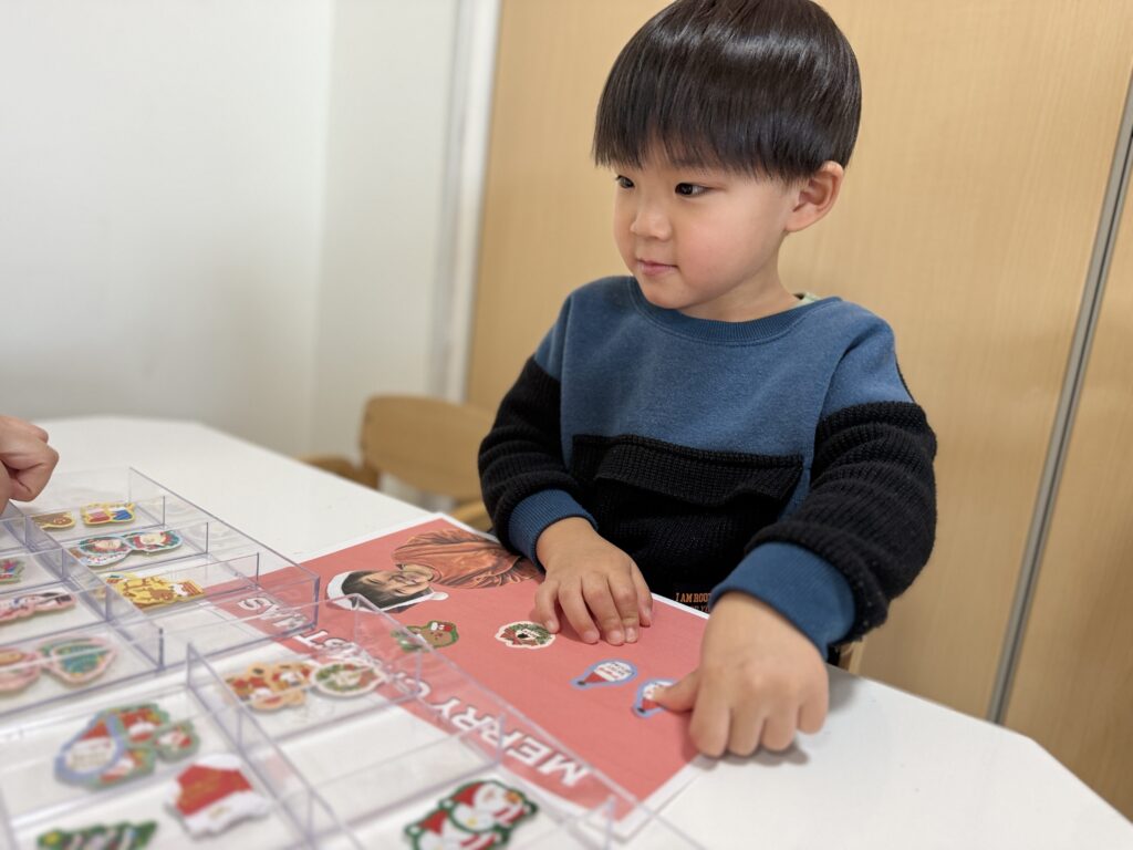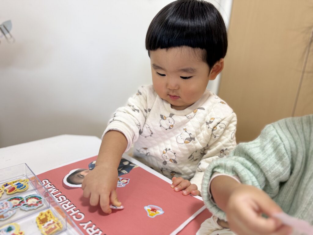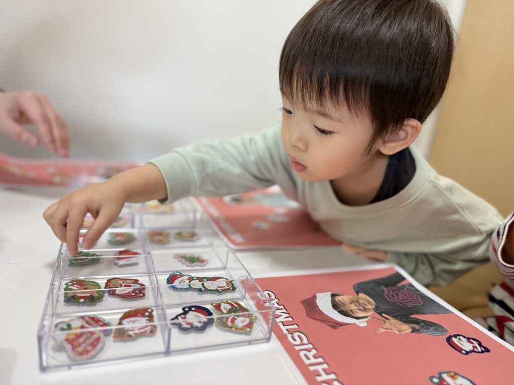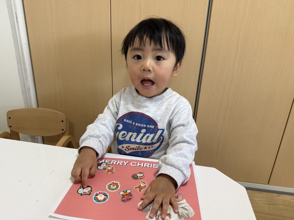 一人ひとり、『これー!』『サンタさん』と自分の好きなシールを選んで貼ったり、中には選ぶシールは全てサンタさんなどサンタ推しのお友だちも🤭❤️