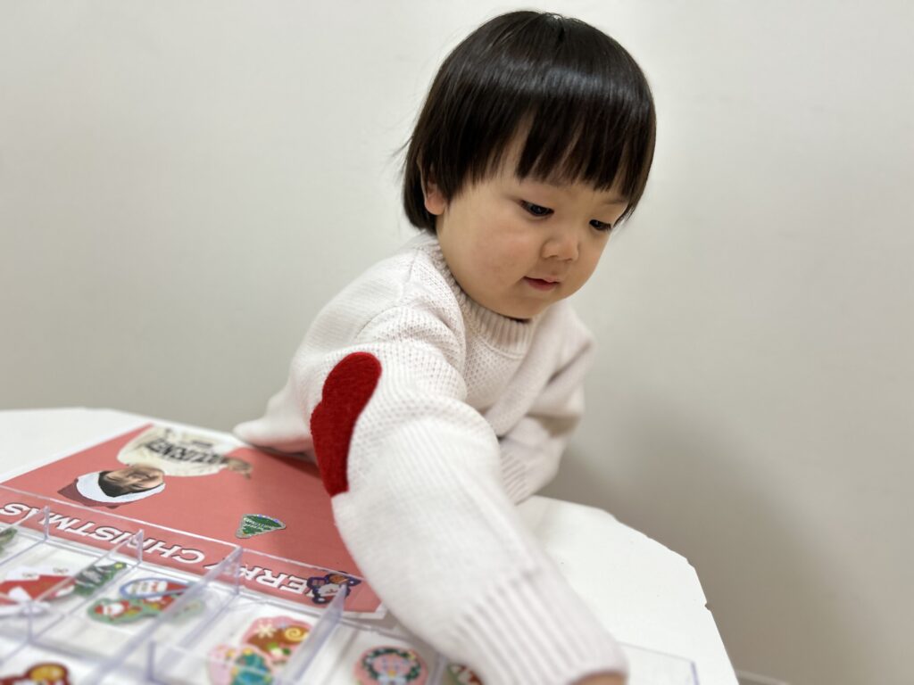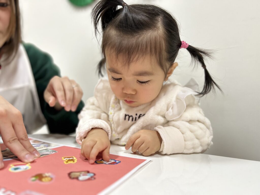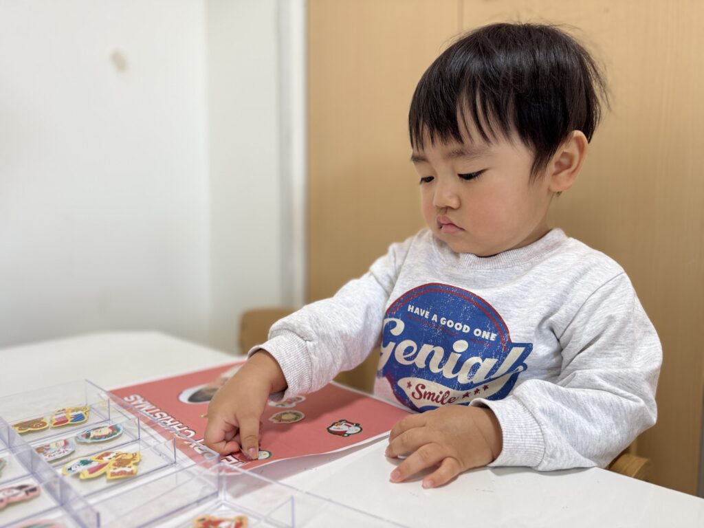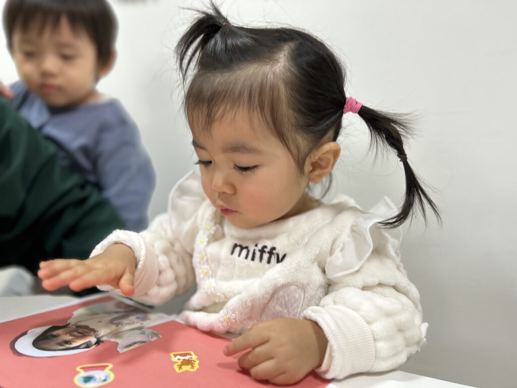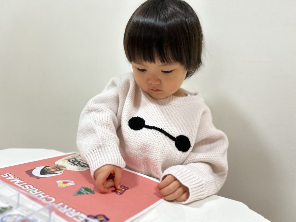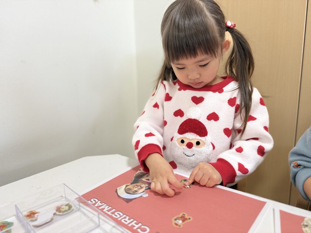 一人ひとり、『これー!』『サンタさん』と自分の好きなシールを選んで貼ったり、中には選ぶシールは全てサンタさんなどサンタ推しのお友だちも🤭❤️