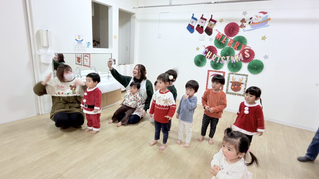 1歳児のお友だちはかわいいサンタさんで登園してくれました🎅🏻♡