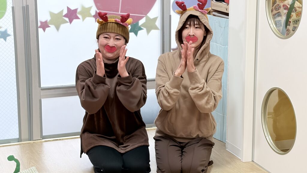 まっかなくちびるトナカイシスターズも満面の笑み😍🩵笑