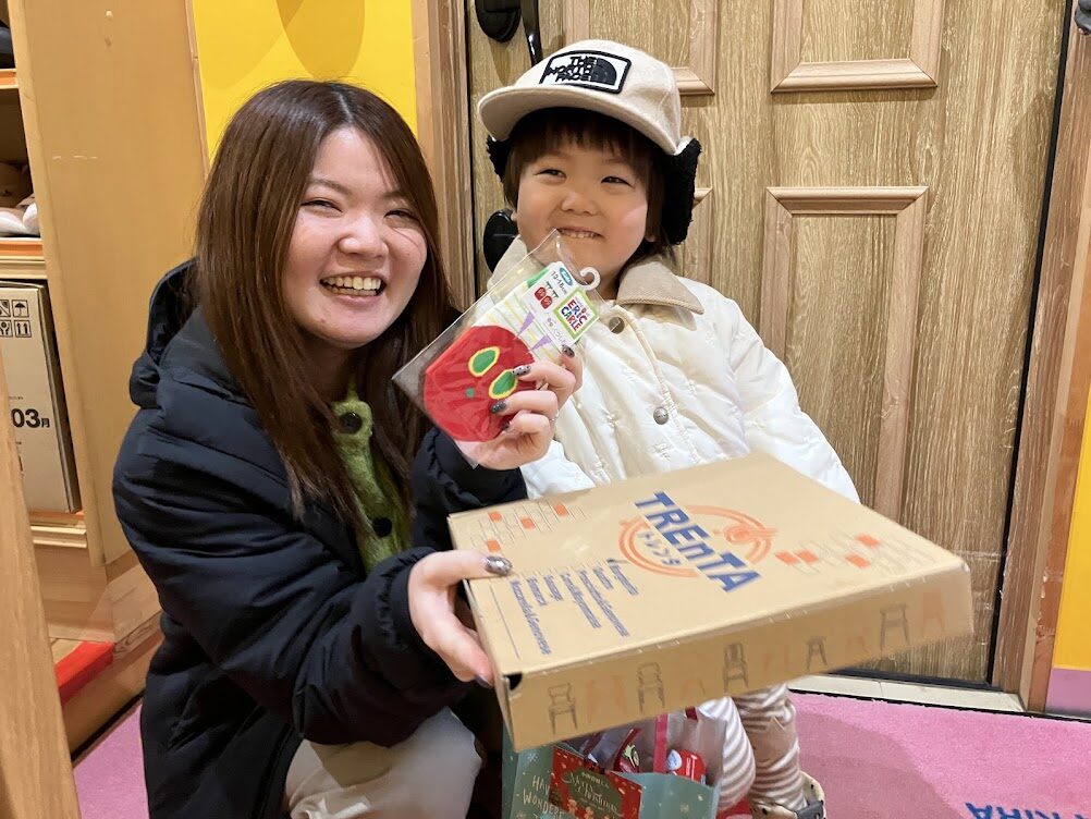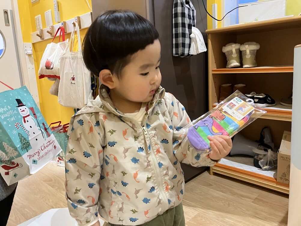クリスマス会で楽しんだ日の帰りに、またまたプレゼント!?とあって、子どもたちはルンルン♪気分が止まらない様子でした😄