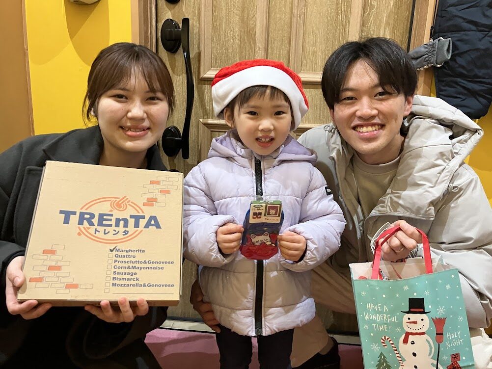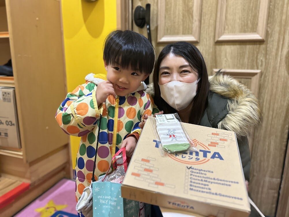 子どもたちの大好きな絵本シリーズの靴下🧦と、クリスマスディナーのお供に💓と、トレンタのマルゲリータピザ🍕をお渡ししました😊💗
