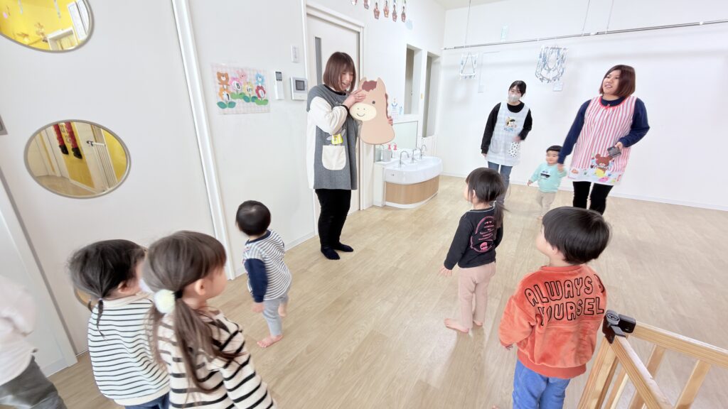 初めにペープサートで十二支について簡単なお話をしました🐍🐎