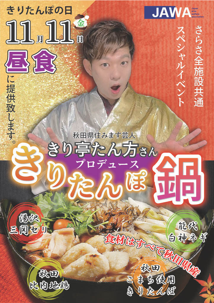 きりたんぽの日にきり亭たん方さんによるきりたんぽ鍋をご利用者の皆さんに提供いたします!!