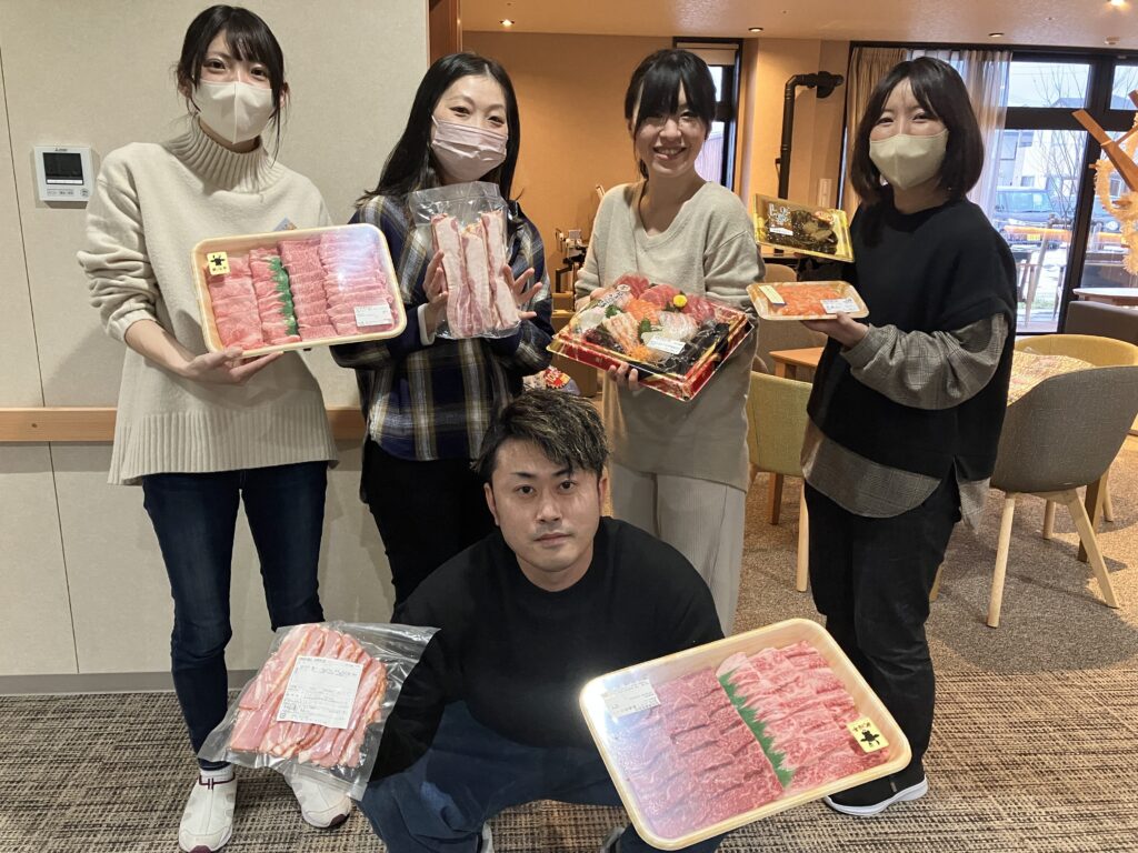 お肉とお刺身は、29日に広報企画部の安田とさらさ横手の職員の方達と施設管理部の山田部長と協力し、配送を行いました??
