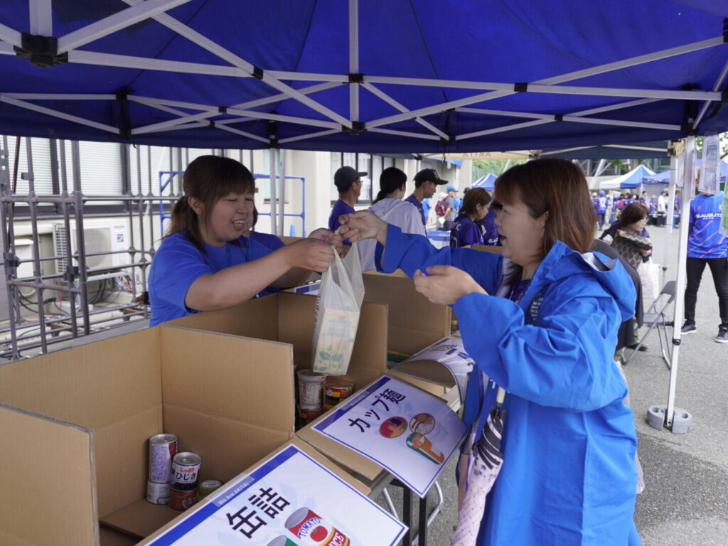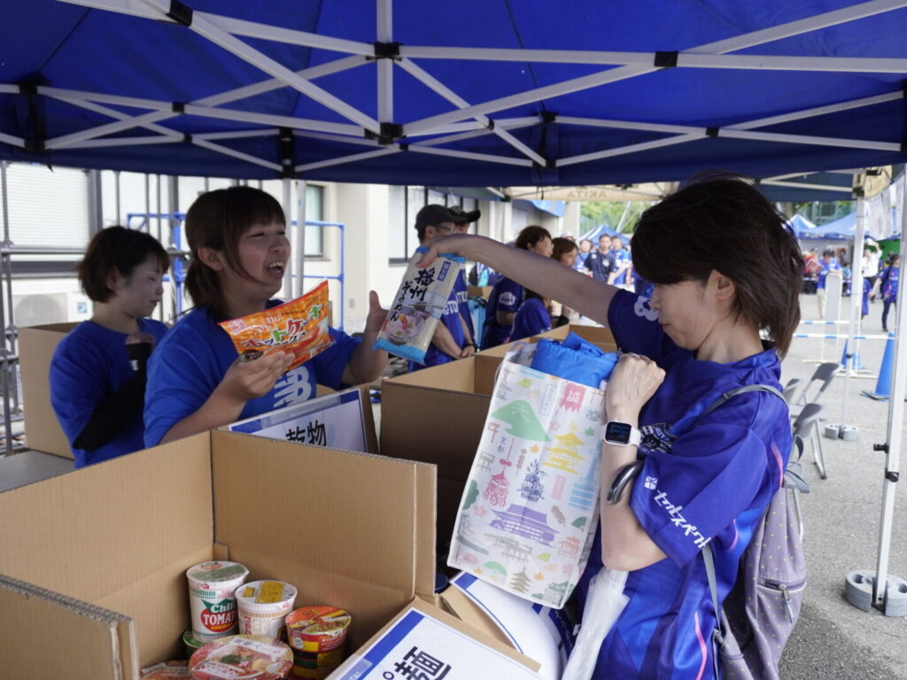 その前からスタジアムに来場された観戦者の方々が次々と食品や日用品を持ち寄って下さり、