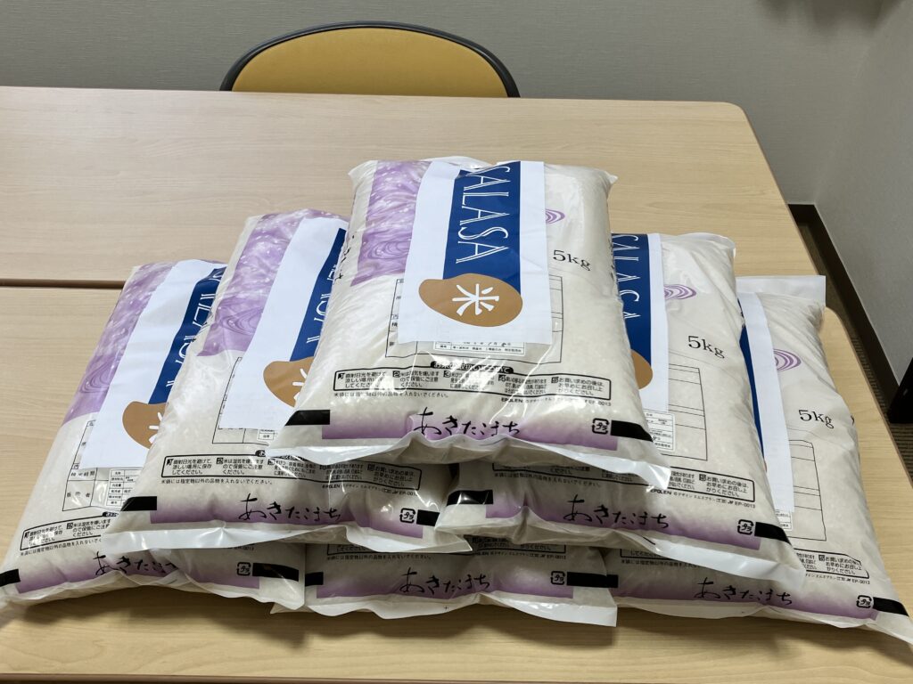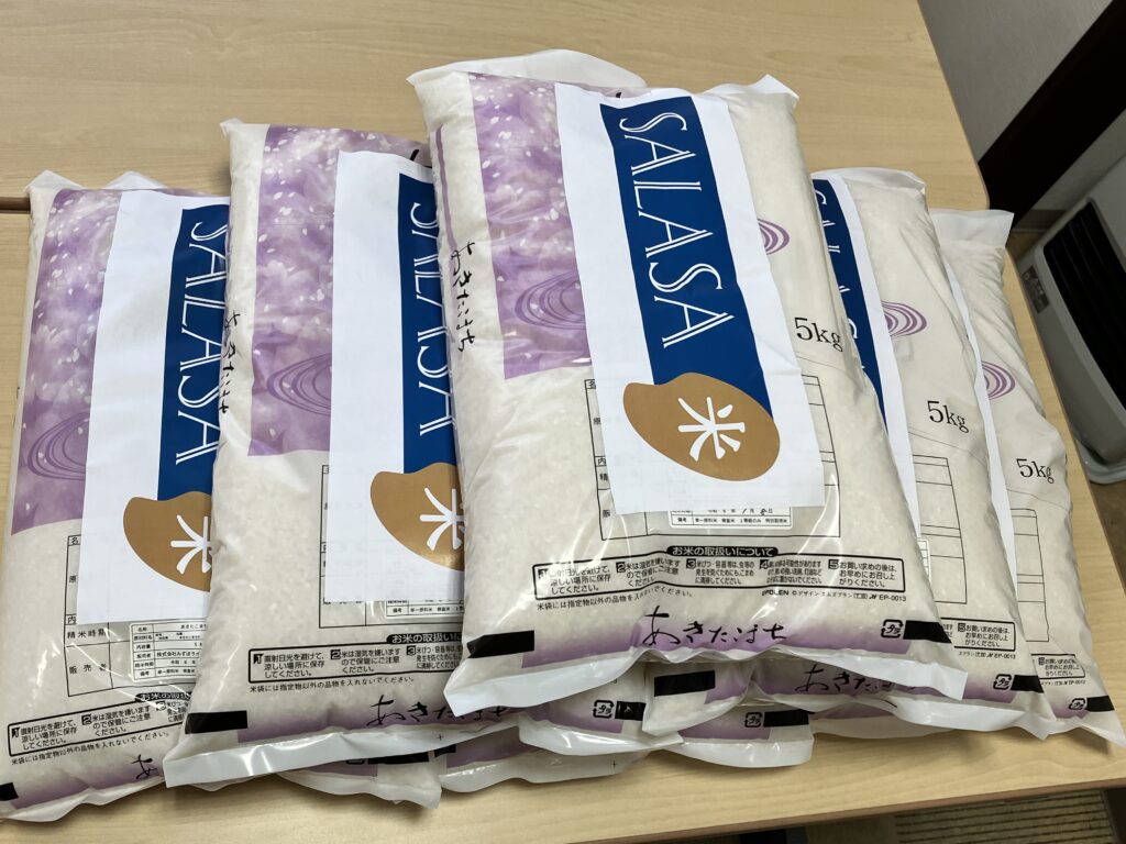 JAWA秋田らしさを添えてお手製の「SALASA米」シールを張ってお渡ししました!