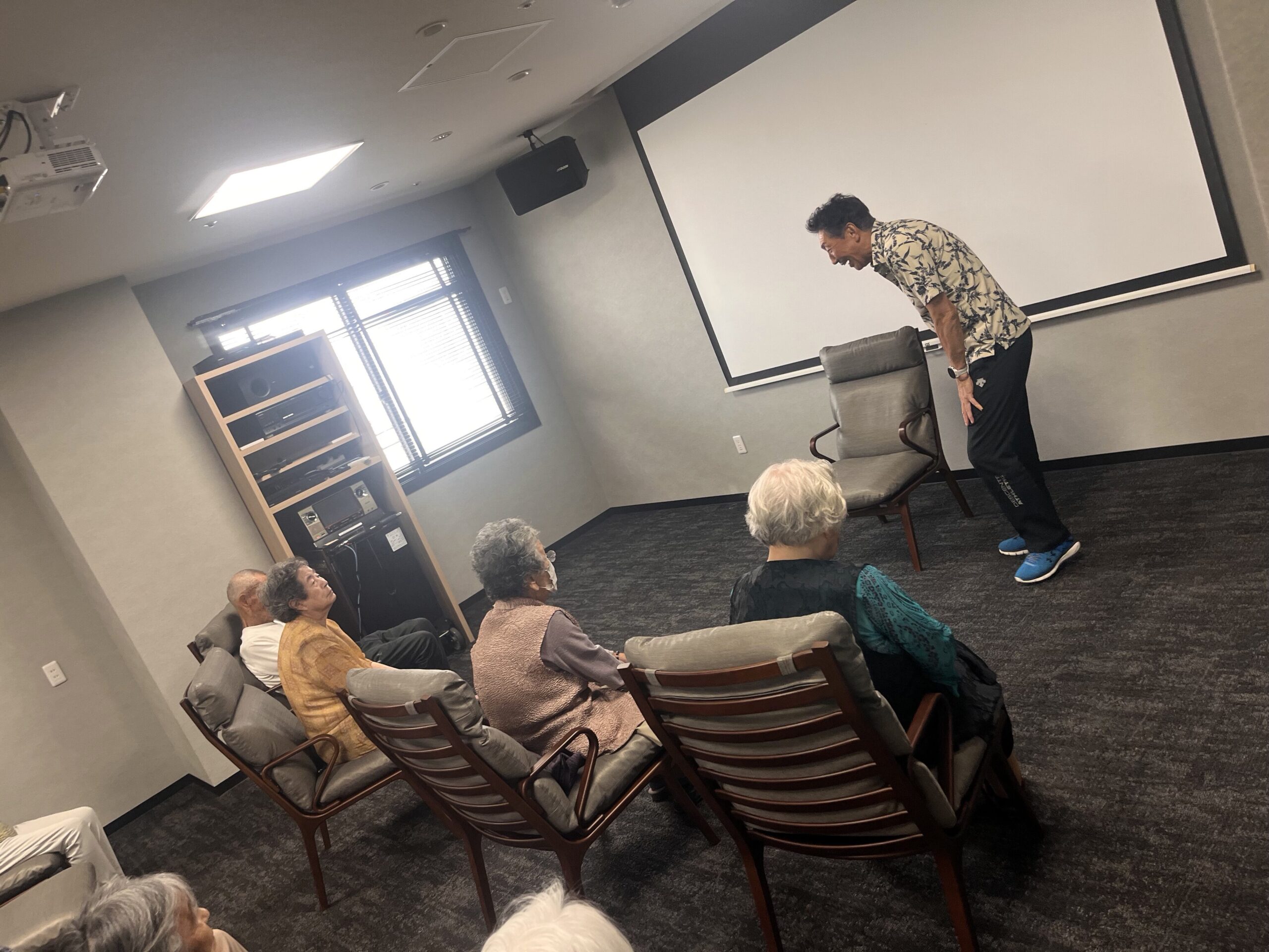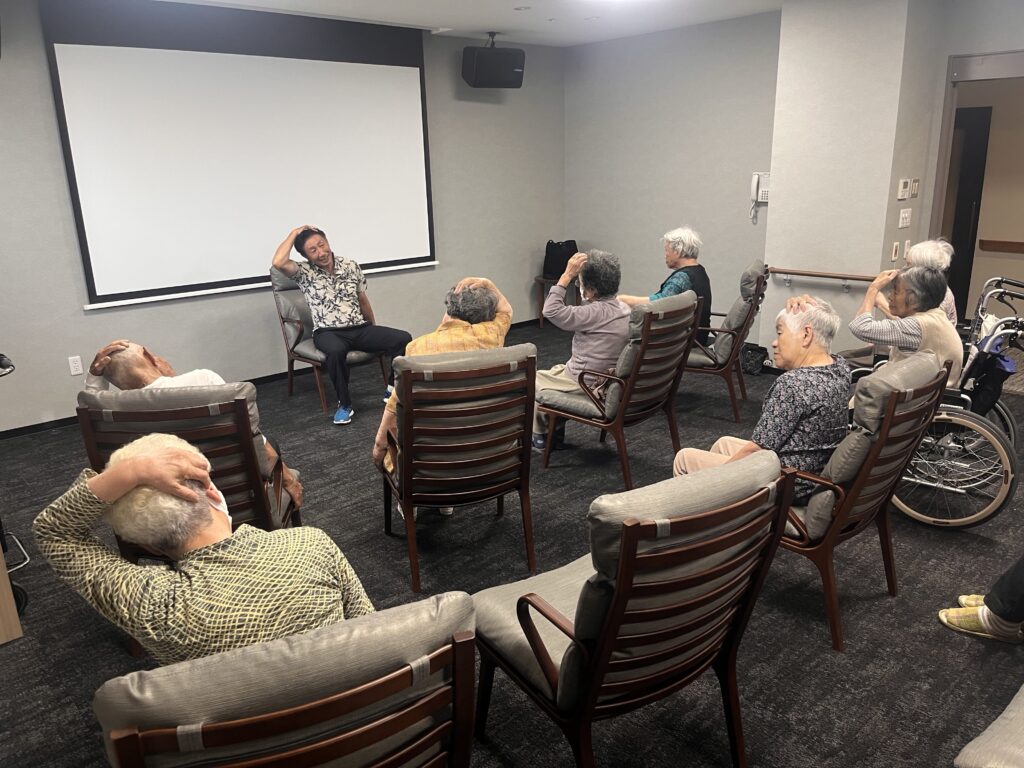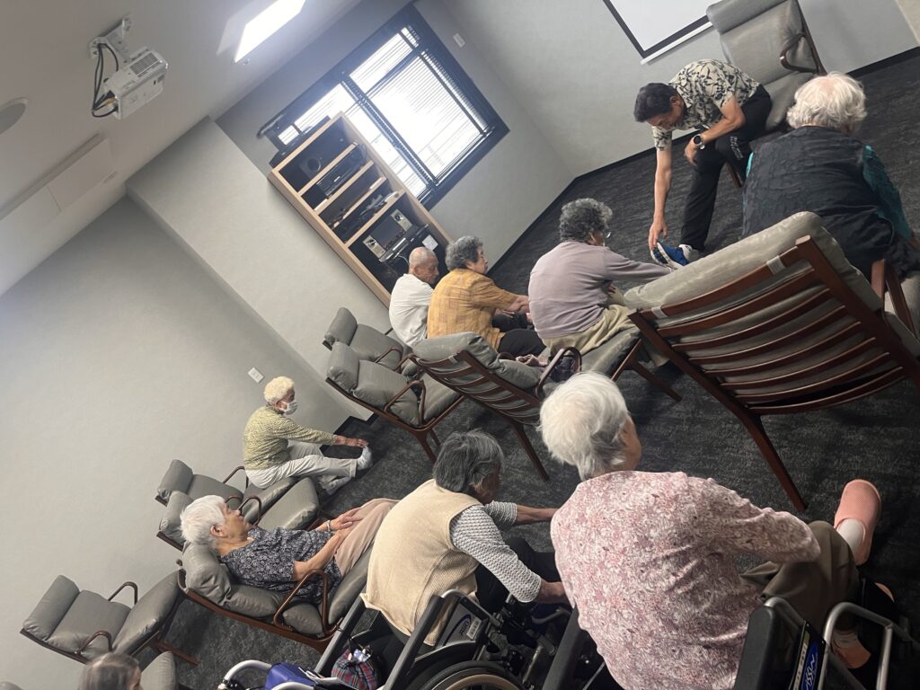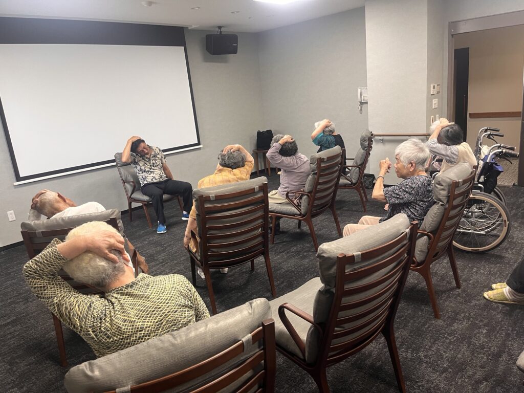 始まる前から「今日は体操なのね〜!」「お昼のカツ丼全部食べたから消費しないとね!」など気合いを入れている方もいらっしゃいました