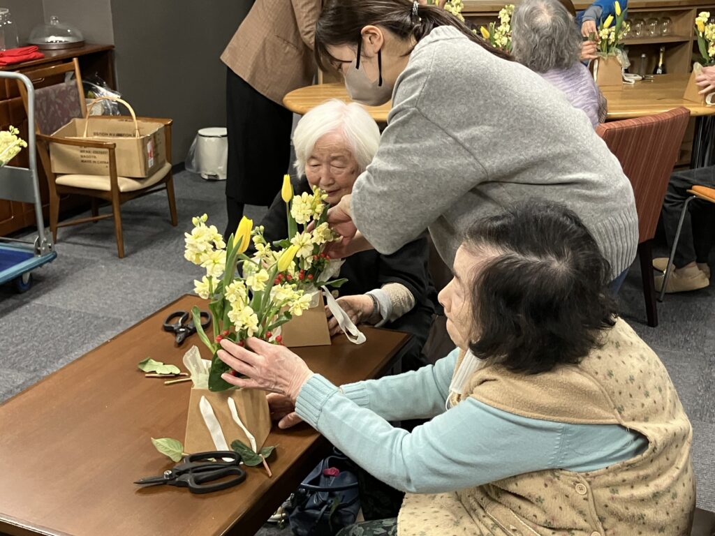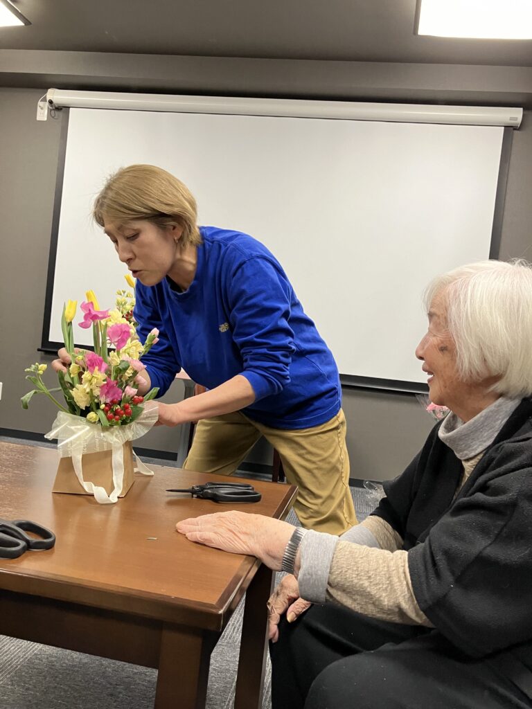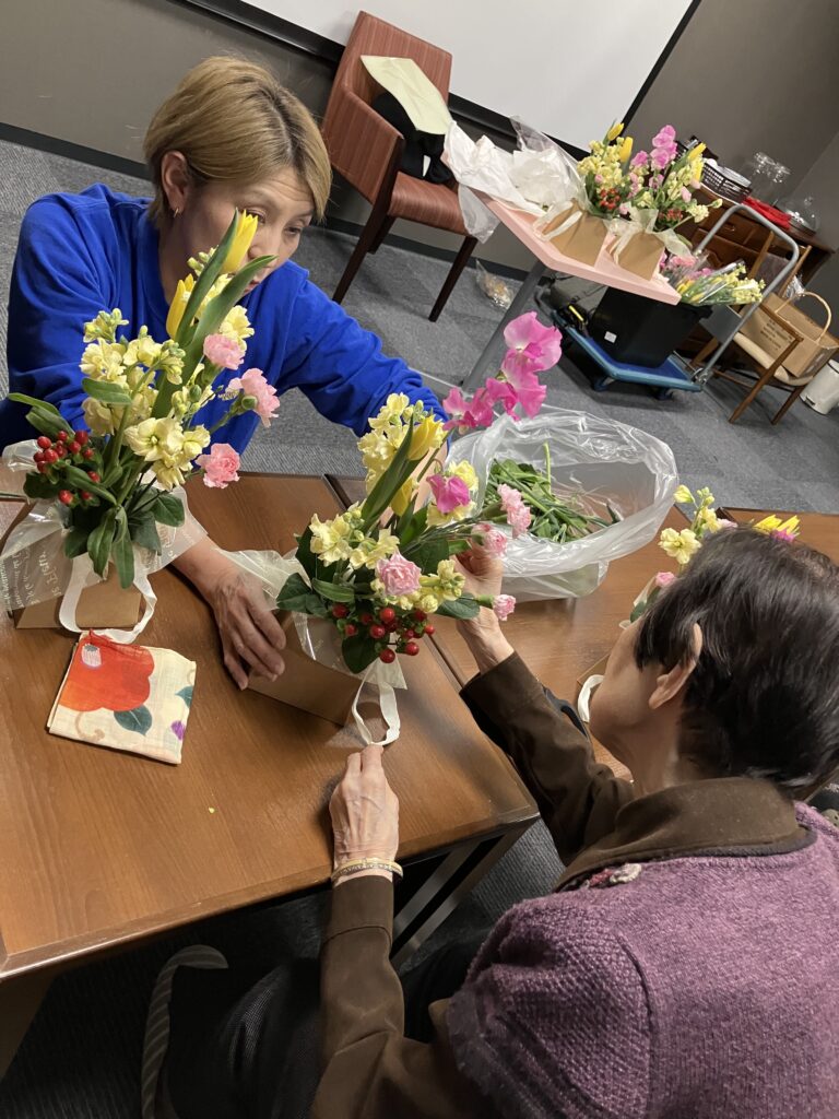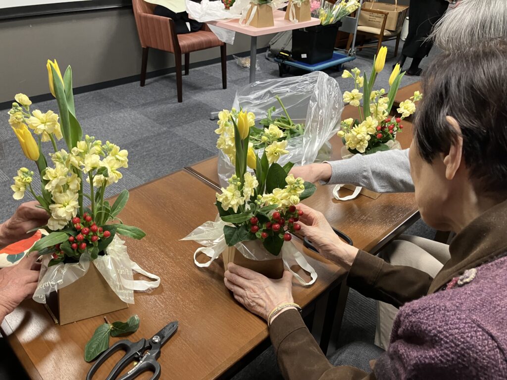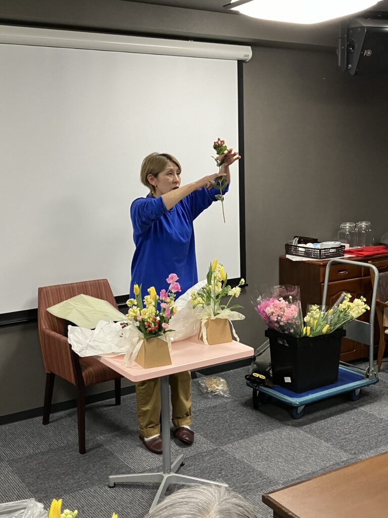 本日は、池田園芸「花結び」より嵯峨綾子先生を講師にお迎えして、フラワーアレンジメント講座を開催しました(*^^*)