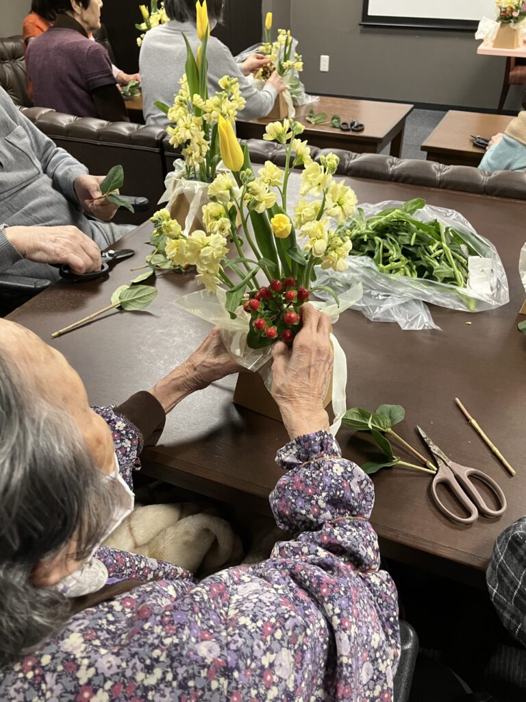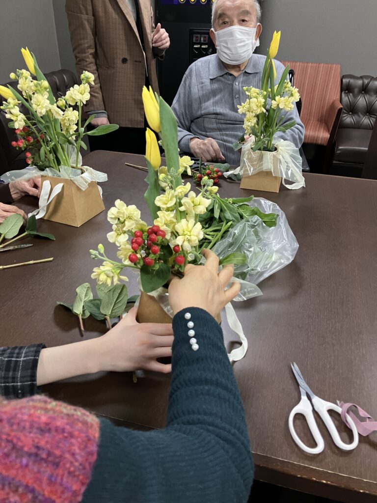 見事なアレンジメント花が完成です💐
