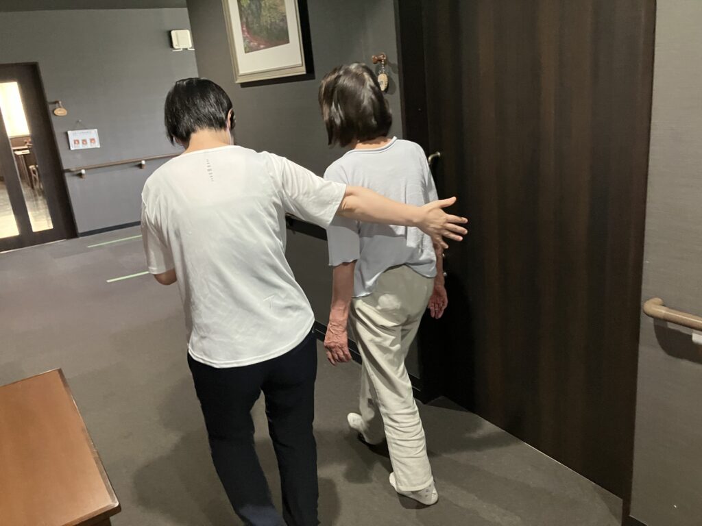 「腕組んだままな立でね」と仰るIさん、綺麗な姿勢で立ち上がりました。