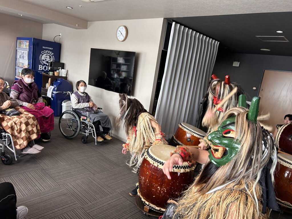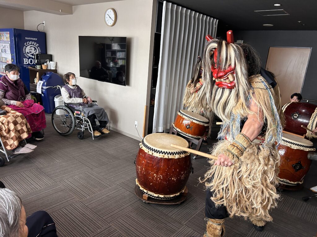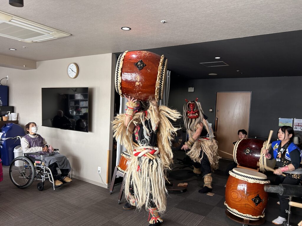 「こんなに近くで見たの初めて✨」「筋肉凄いな〜💪」など大迫力のなまはげ太鼓の演奏やパフォーマンスにご利用者さんも感動されていました🎉