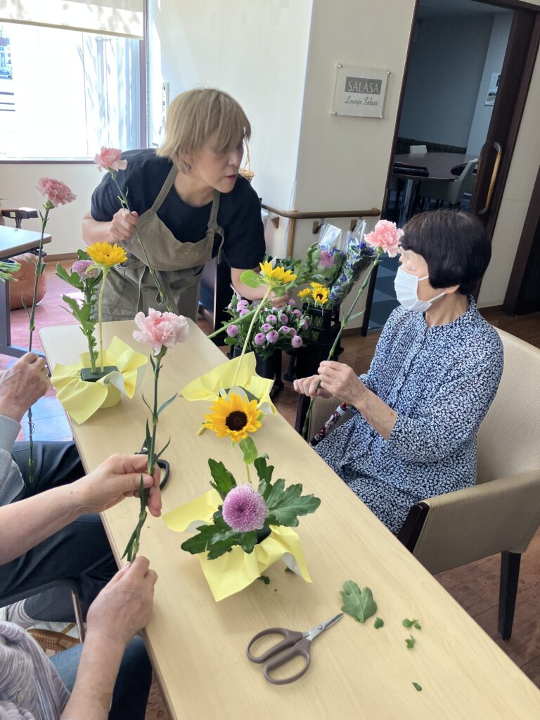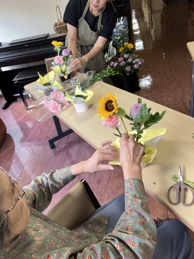 先日、さらさ横手では大人気のフラワーアレンジメント教室を行いました🌼