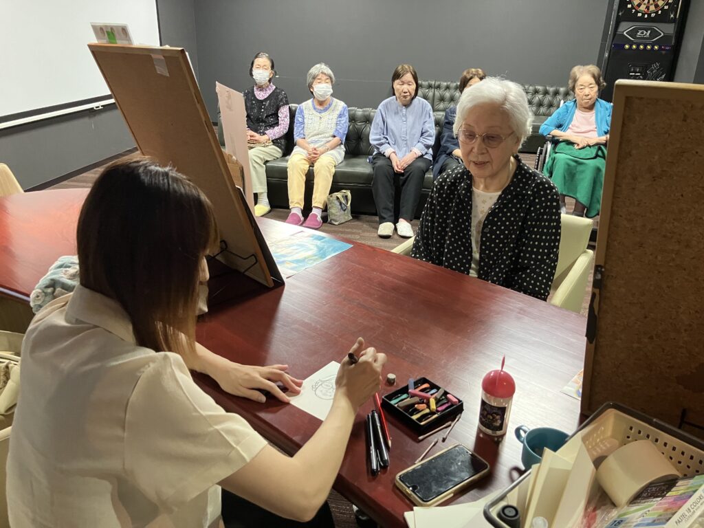 皆さん「可愛く描いてもらって良かった☺️」「どんなの描いてもらった?」「あらー似てる😊」と見せ合いながら、素敵な笑顔で会話に花を咲かせていました❤️