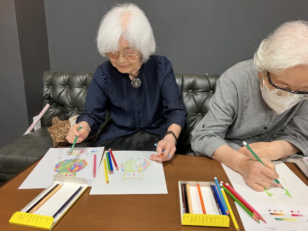 「今日、塗り絵でしょ?この前やったら楽しかったから楽しみにしていたの🥰」と皆さんからワクワクが伝わって来ます⤴︎❤️