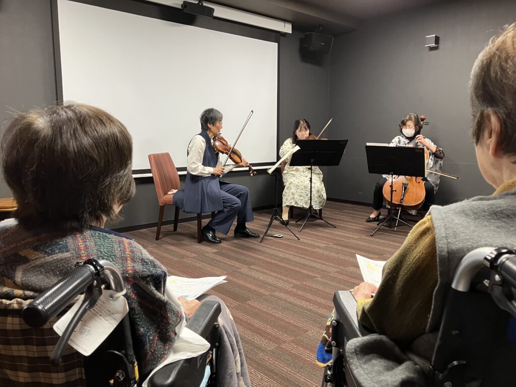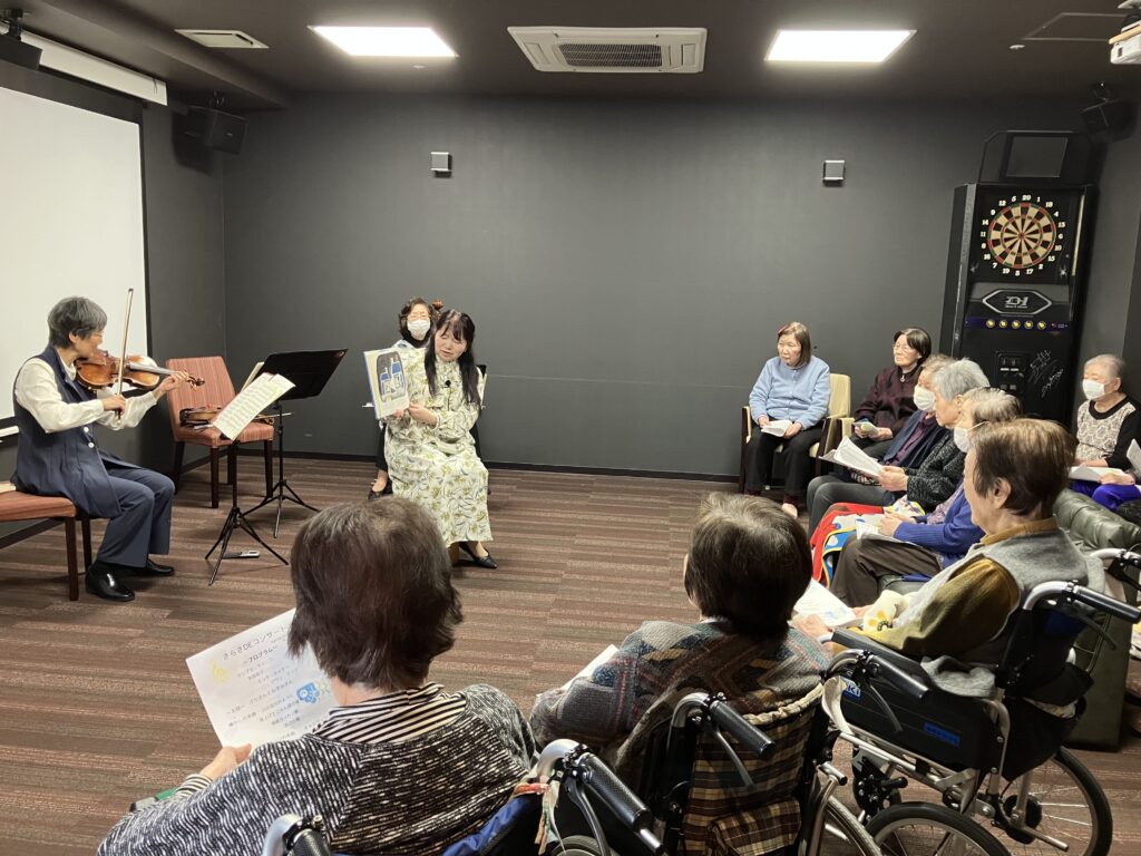 生演奏ならではの迫力、臨場感そして演奏者と利用者さんが一体になります。