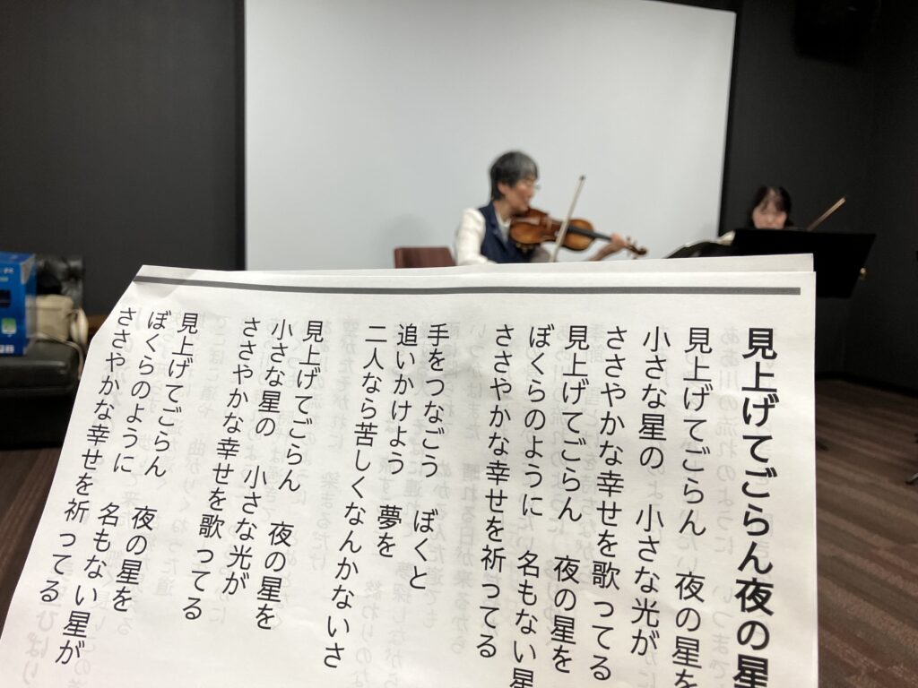 「川の流れのように」「見上げてごらん夜の星を」「銀座カンカン娘」「浜辺の歌」皆さんの歌声と管楽器が見事に調和し、きれいに響きます😃