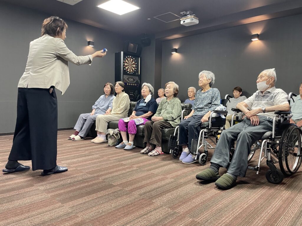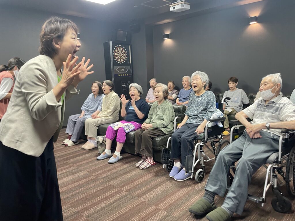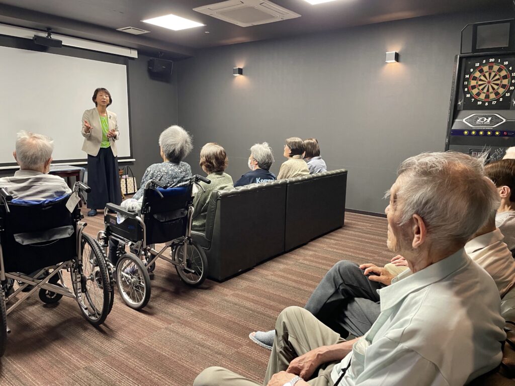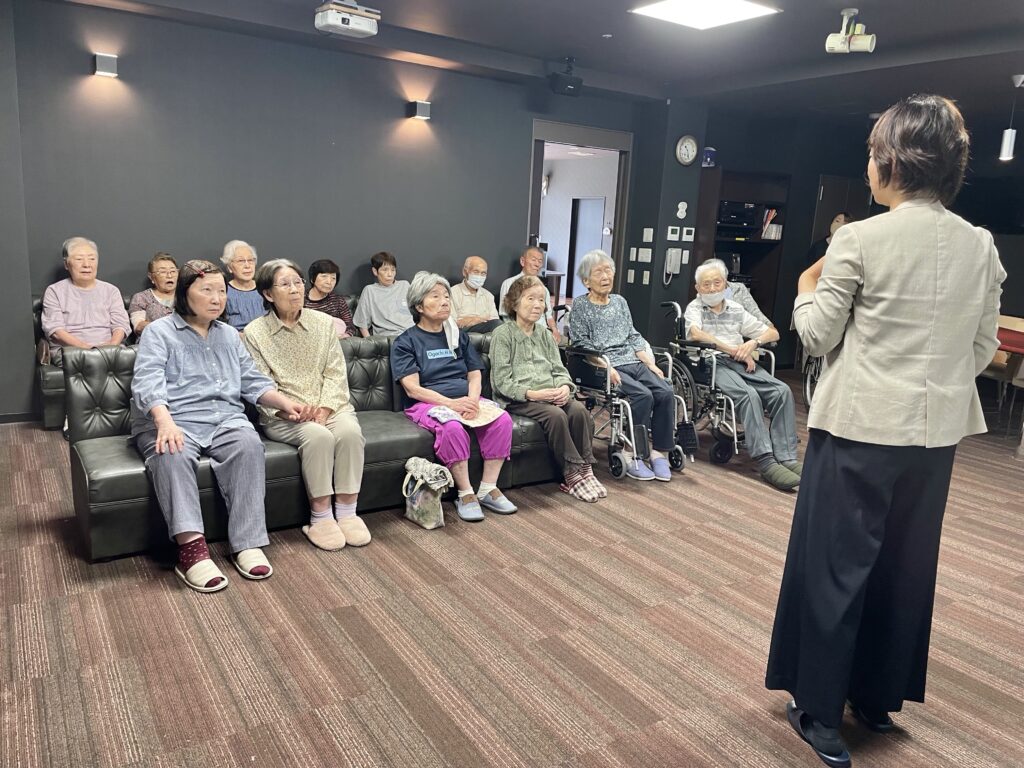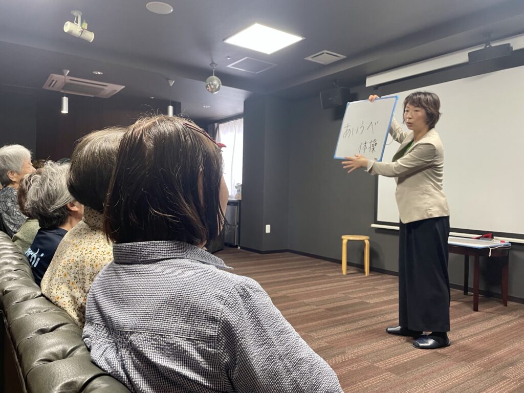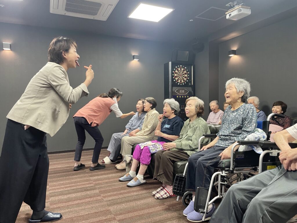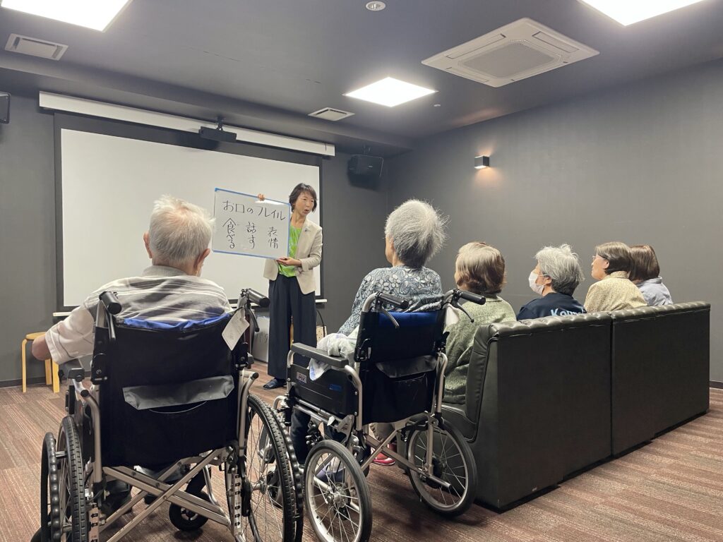 本日は表情力セラピストであり、歯科衛生士の中川よしこさんをお迎えし、「お口とお顔の健康体操」を行いました。