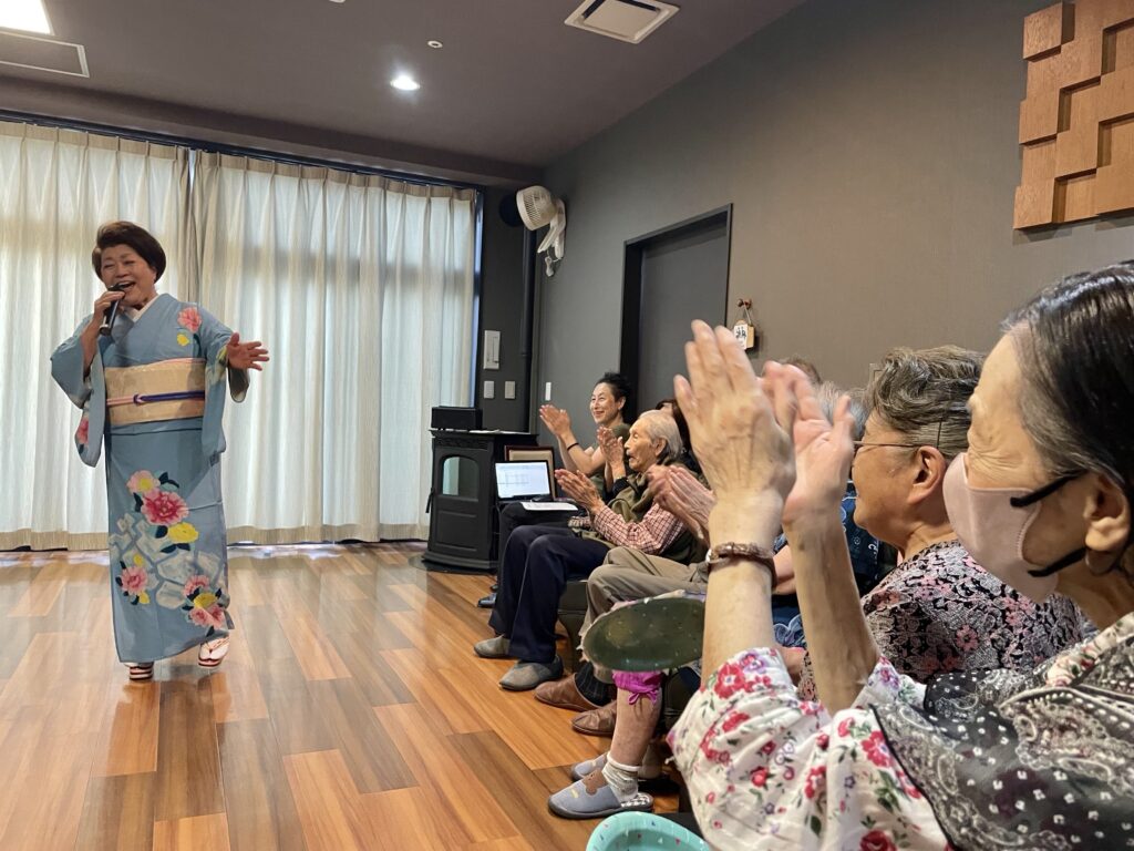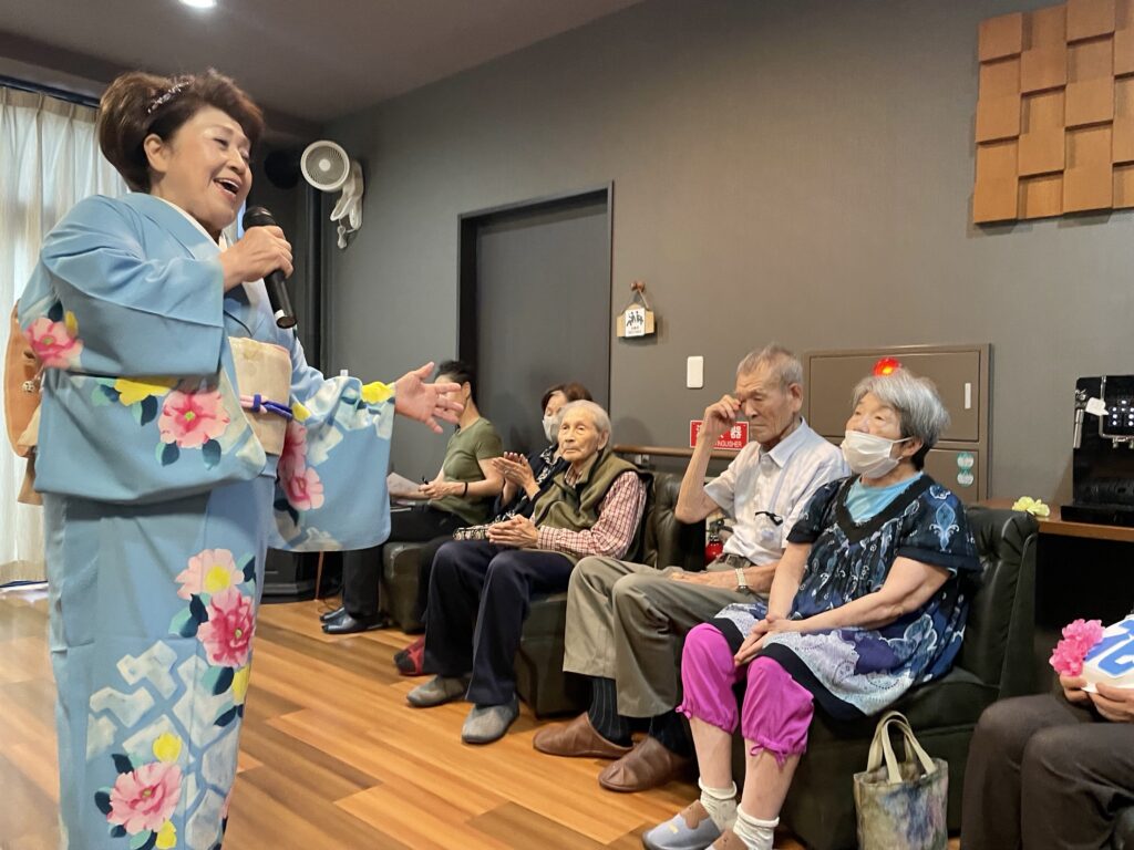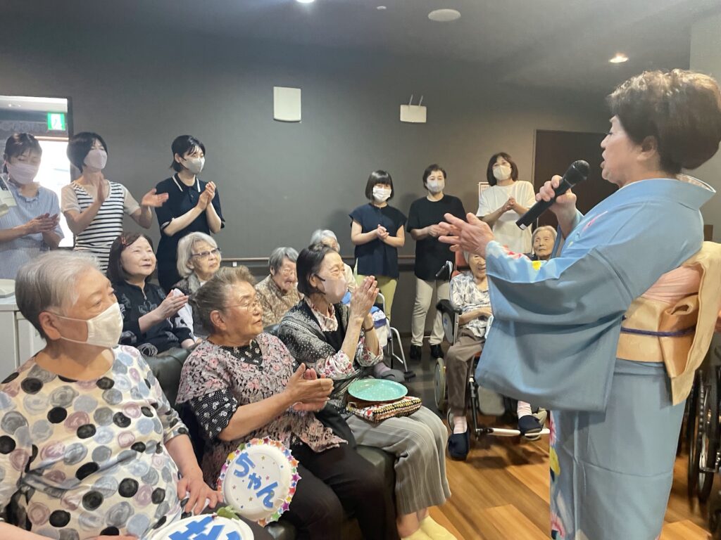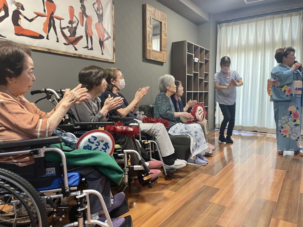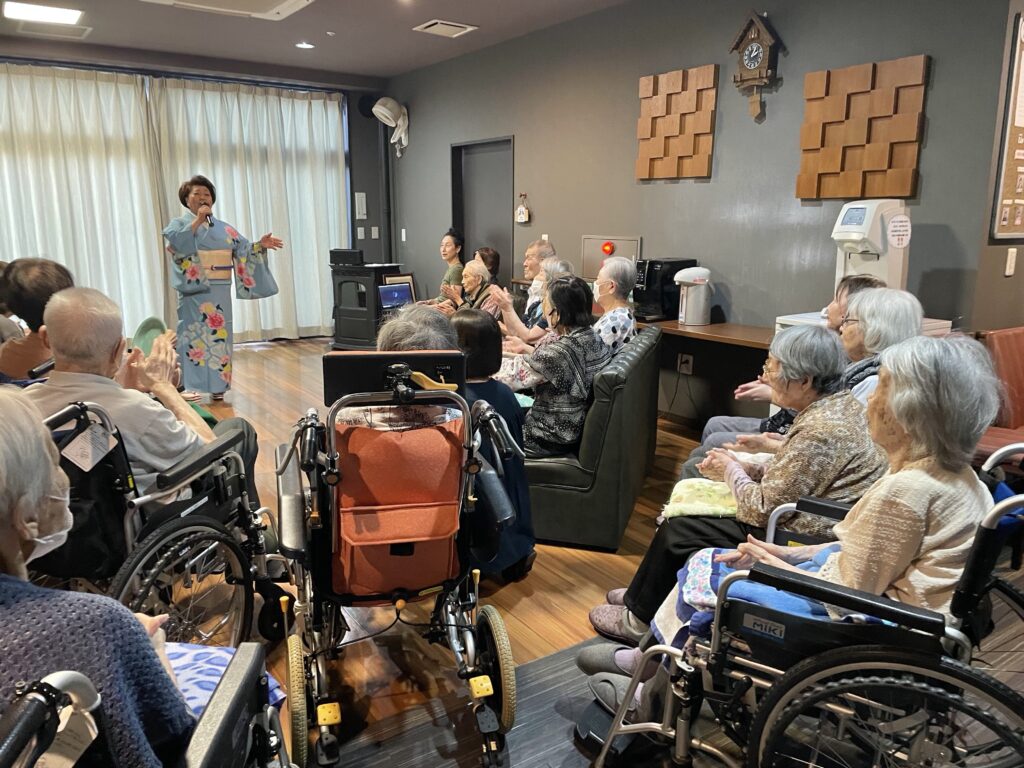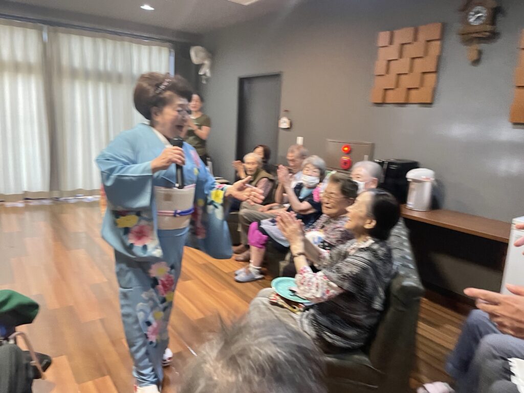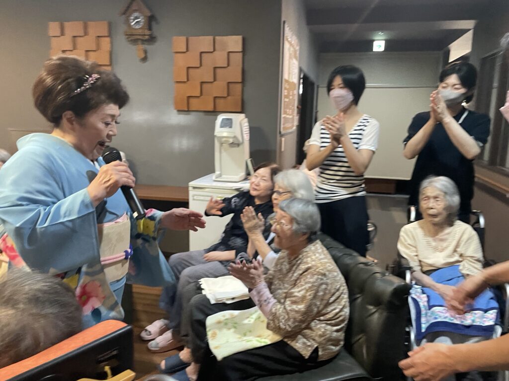 声量豊かな歌声、面白いトーク、そして、優しく気さくな人柄に利用者さんはもちろん、職員もすっかりファンになりました❤️