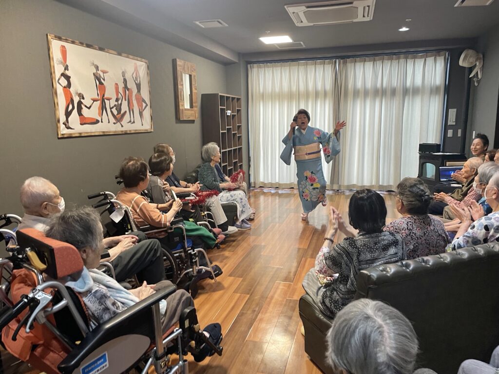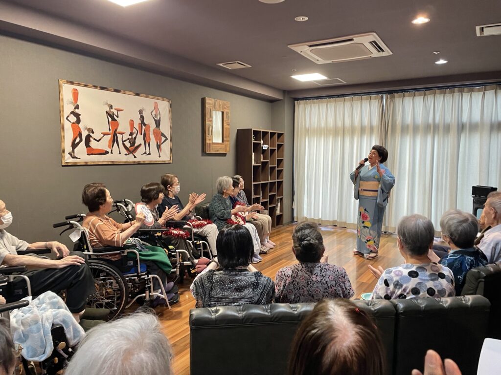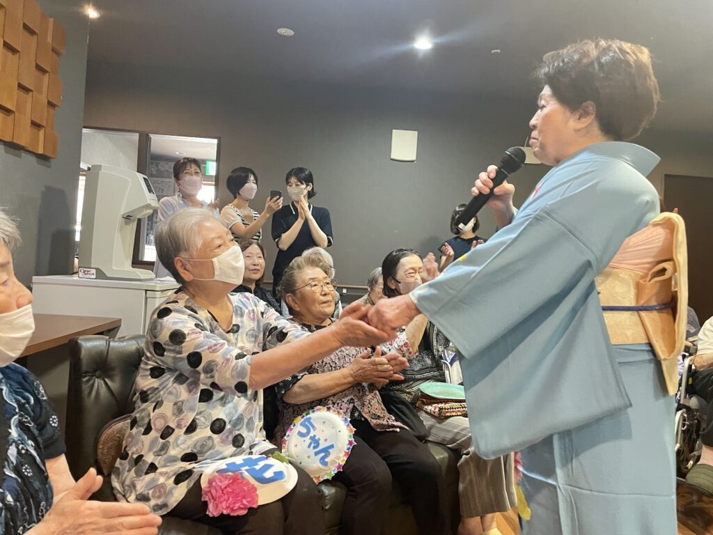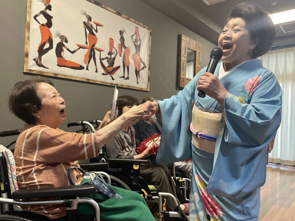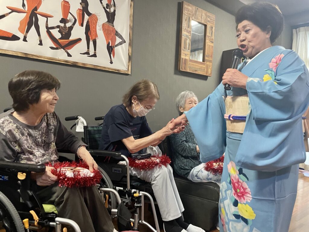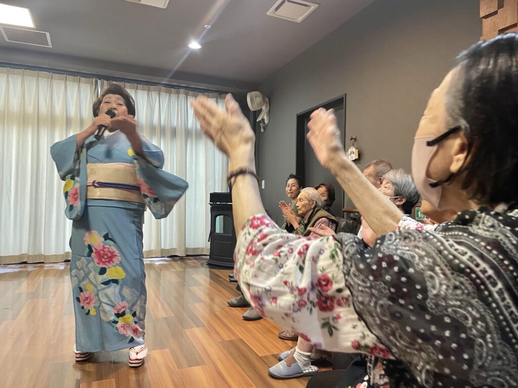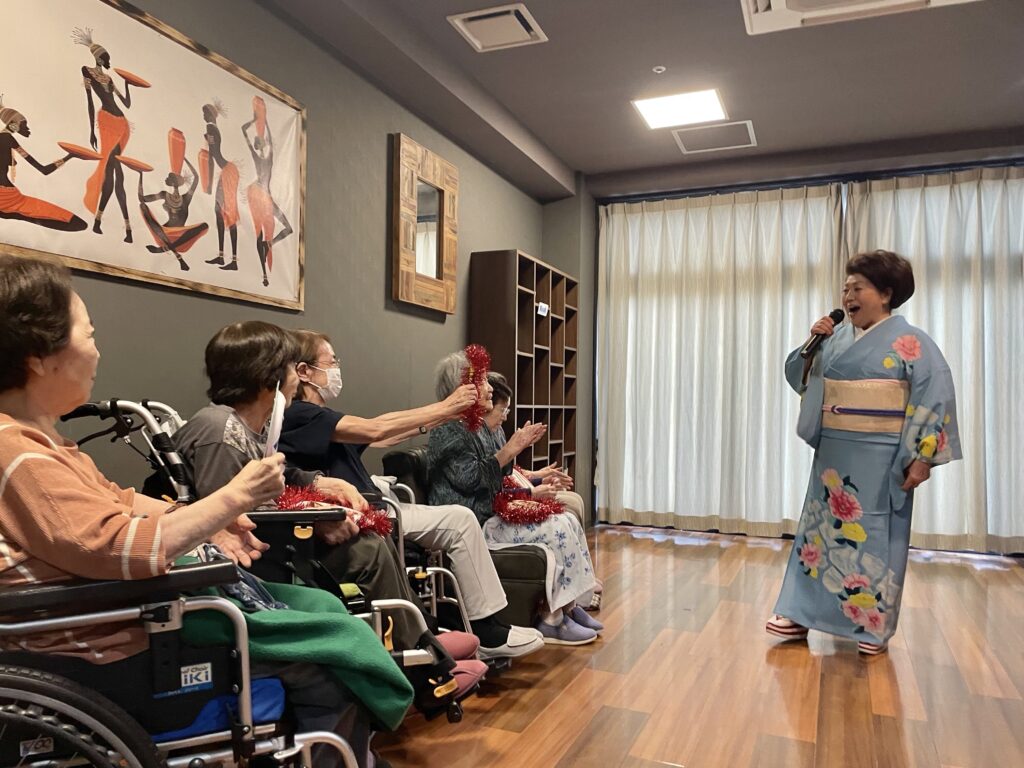 声量豊かな歌声、面白いトーク、そして、優しく気さくな人柄に利用者さんはもちろん、職員もすっかりファンになりました❤️