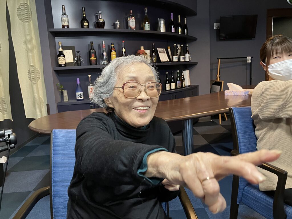 体操をしながら、「難しくなってきたり間違えてしまった時は、笑って誤魔化す😊✨」と先生よりお話があり、すかさずNさん「でぎね❗️笑ってごまかす❗️」と周囲の皆さんの笑いを誘っていました🤗