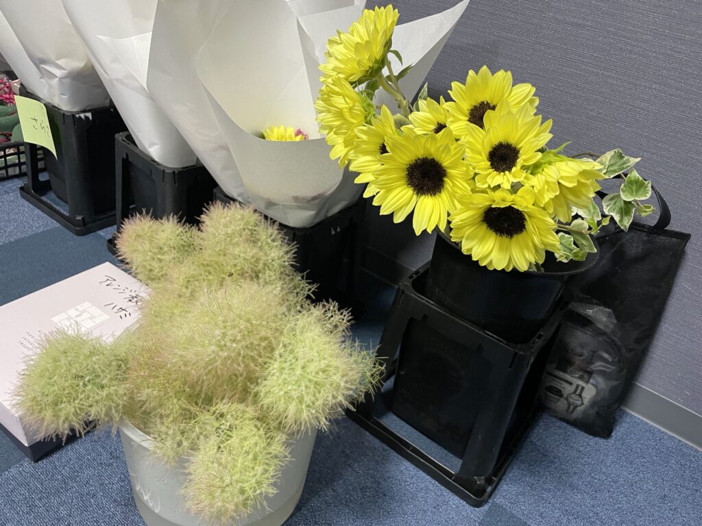 ヒマワリ以外にもいろんな種類のお花がありますので、種類が多いだけいろんなデザインの作品が出来上がりそうでしたよ!