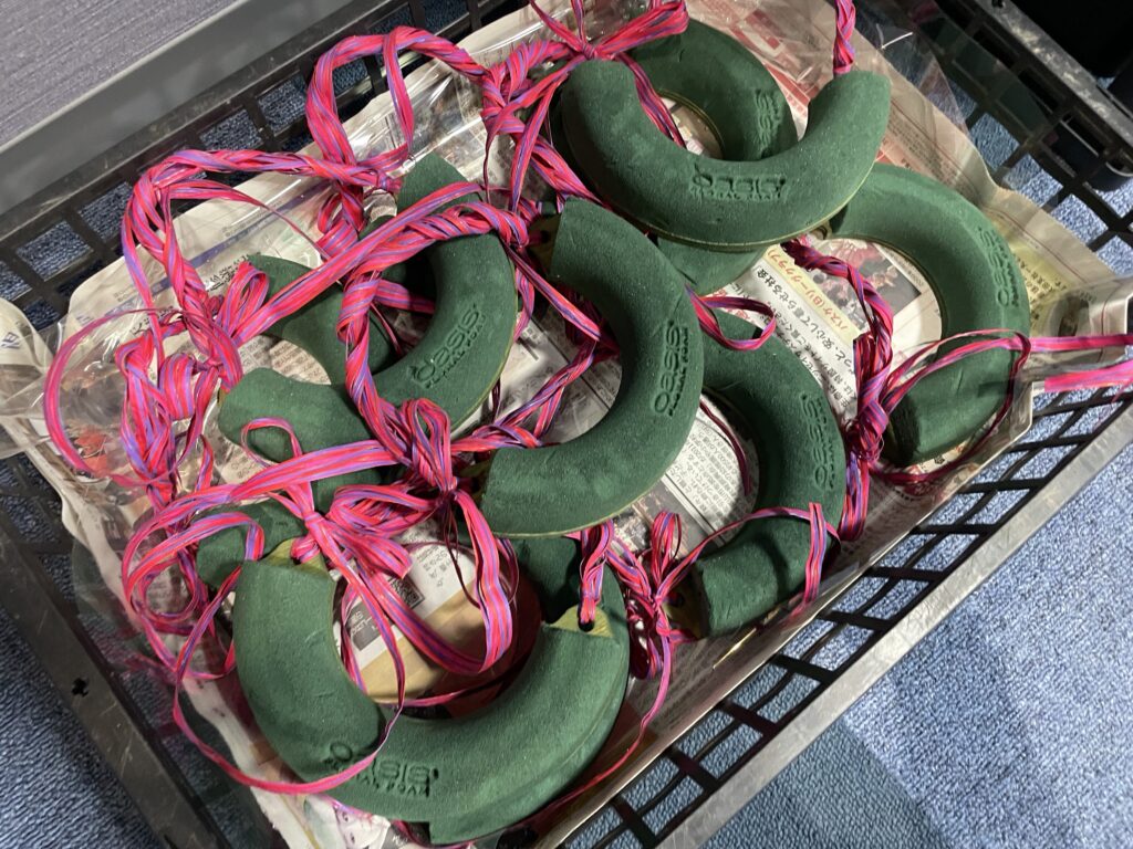 『今度またリースづくりがしたい!』と、麻希パートナーからもリクエストをしておりその希望たっての…ということで、今回は壁掛けにも素敵なハーフリース作りを行ないました!