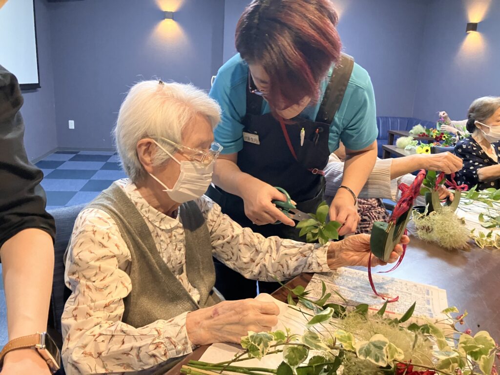 完成した作品を居室の入り口に飾られる方や、居室の中で愛でる方など様々でした。