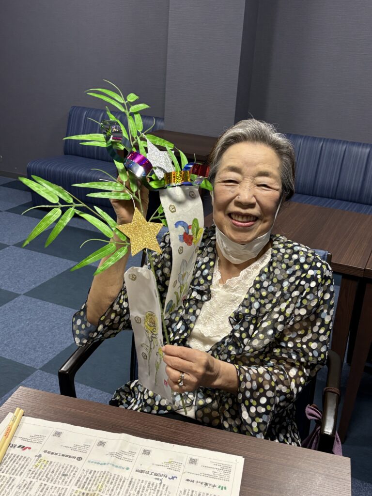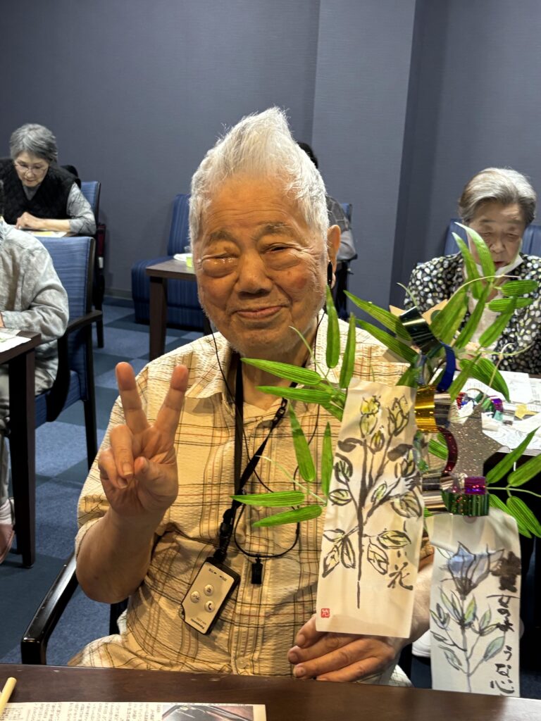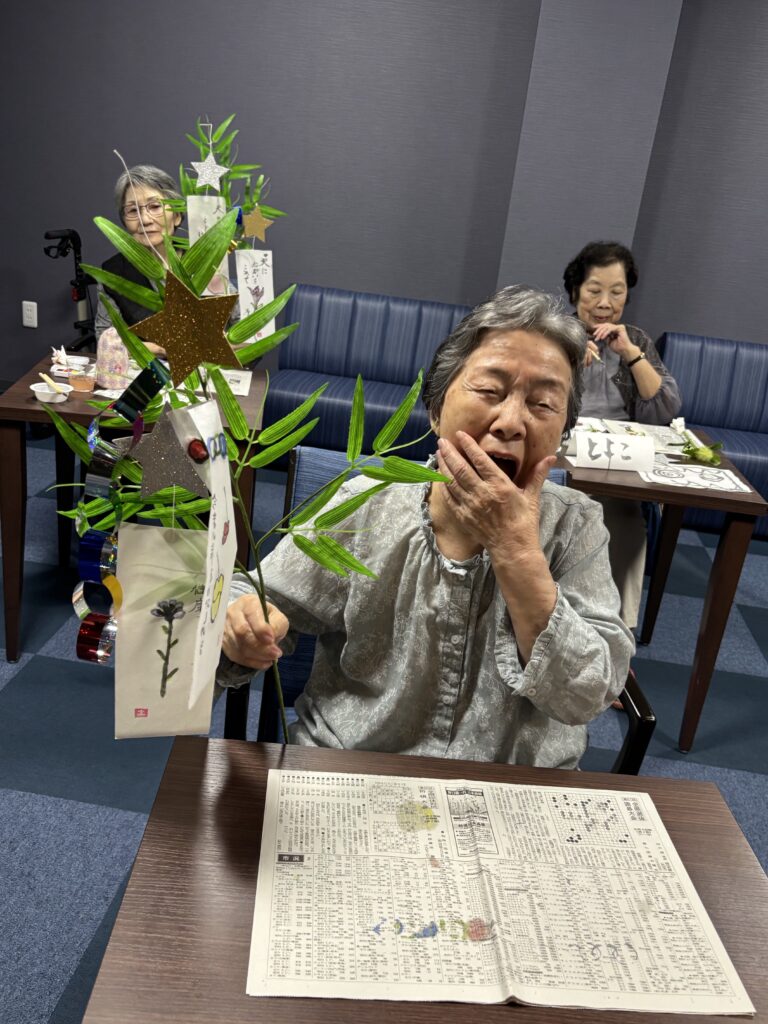 2枚の短冊が出来上がり、笹に飾っていきます🎋