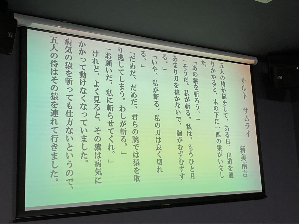 ごんきつねや、手袋を買いに🐈‍⬛🧦などを書かれた新美南吉さんの『サルト・サムライ』という著書を皆さんでゆっくり音読したり、、