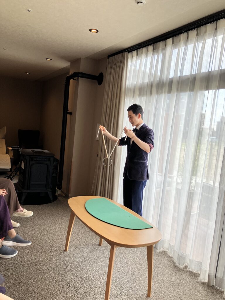 ロープを使ったマジックやリングを使ったマジックを次々と披露して頂きました。
