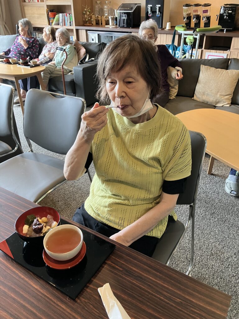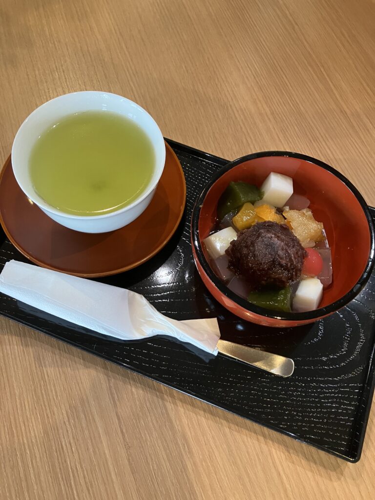 本日は美味しいお茶と自家製のあんみつを振舞って下さいました👐