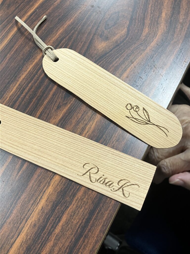 仕上げにレーザーで花模様やご自身のお名前を刻印します。特別感がでて愛着がわきますね💛
