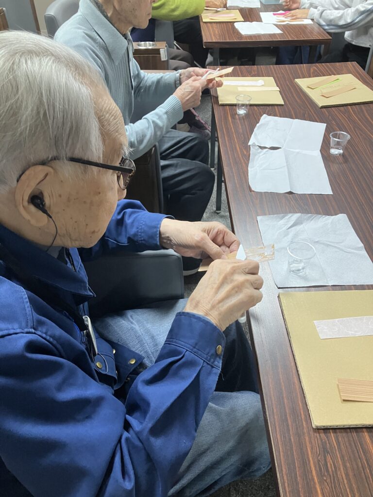 今週のフレイル予防では読書の秋にぴったりなしおり作りを体験しました。