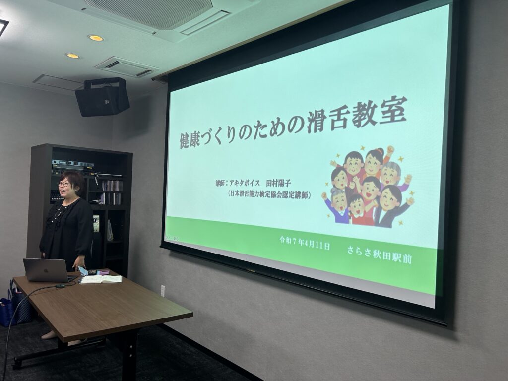 本日のさらさ秋田駅前はアナウンサーの田村陽子さんが来て下さりお口の体操と滑舌運動をご指導して頂きました✨