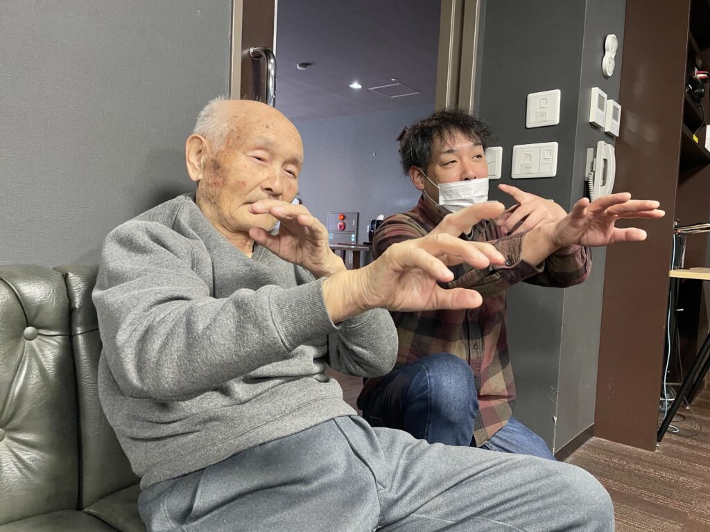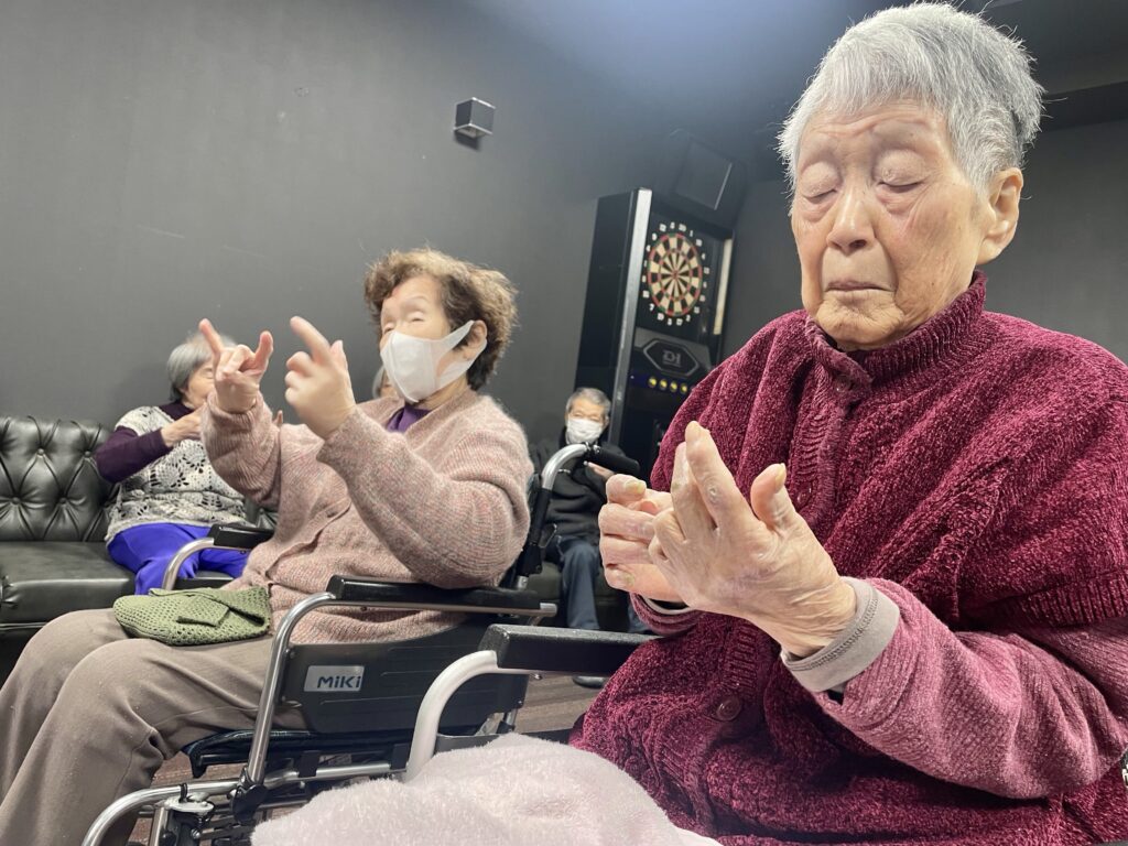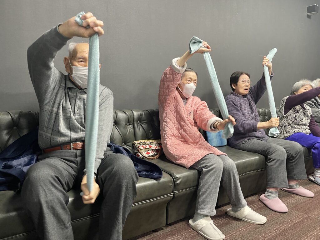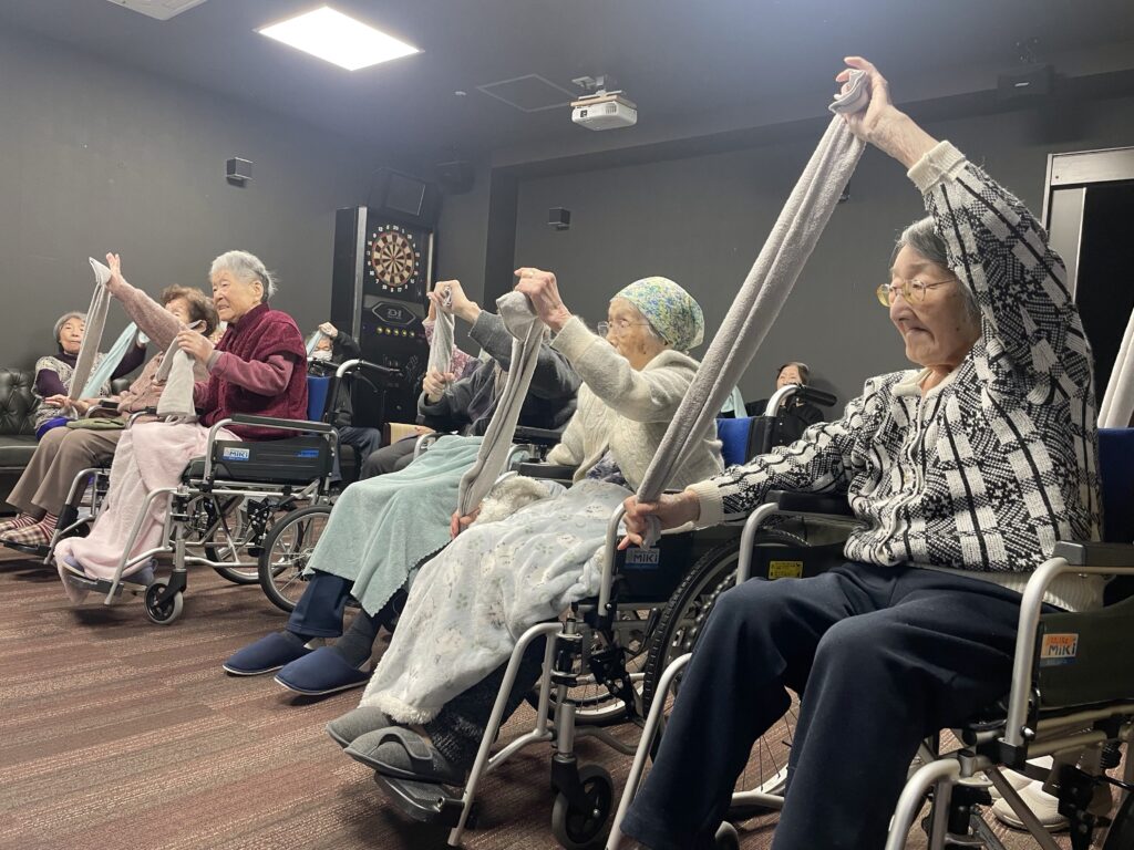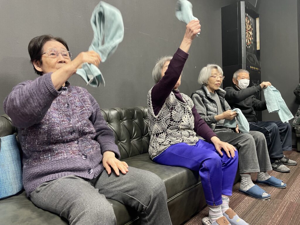 タオル体操は「北国の春」に合わせて、5つの動きを組み合わせて動きます💪