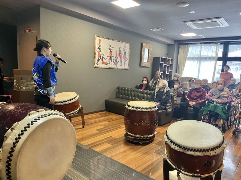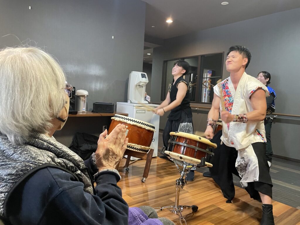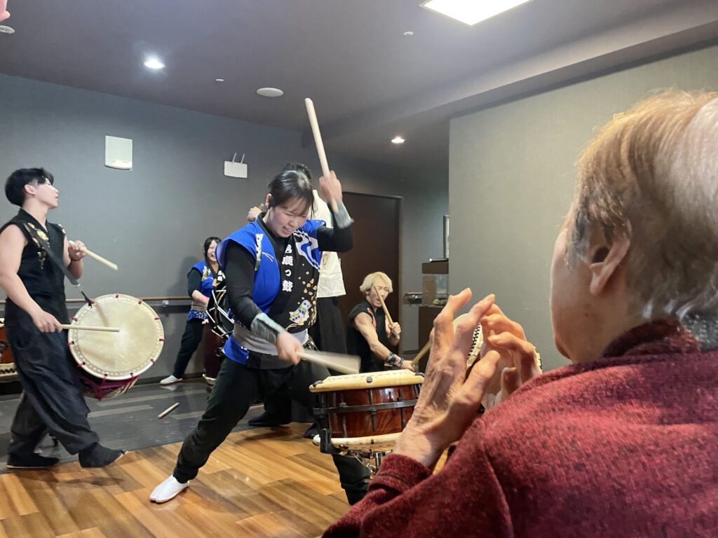 和太鼓の力強い音と、汗をかきながら力一杯和太鼓を叩く姿に、涙を流す利用者さんも…