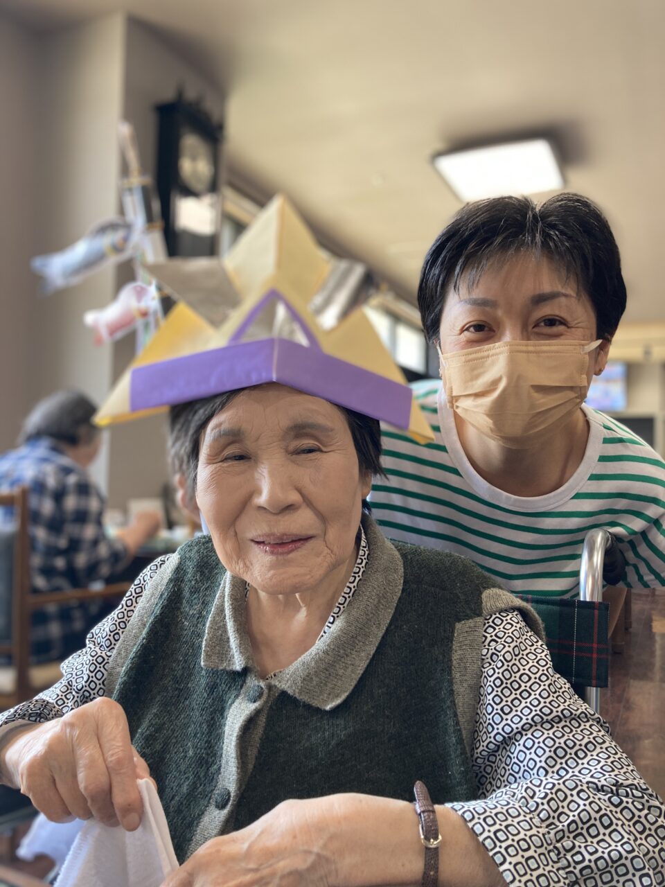 さてパートナー手作りの兜をかぶって童心に帰って頂きましょう!