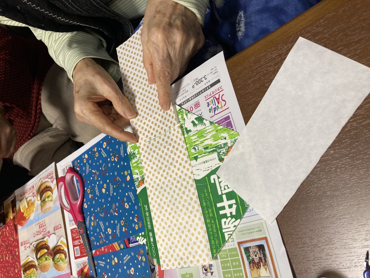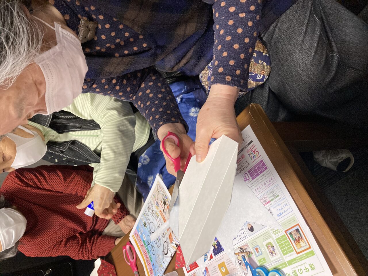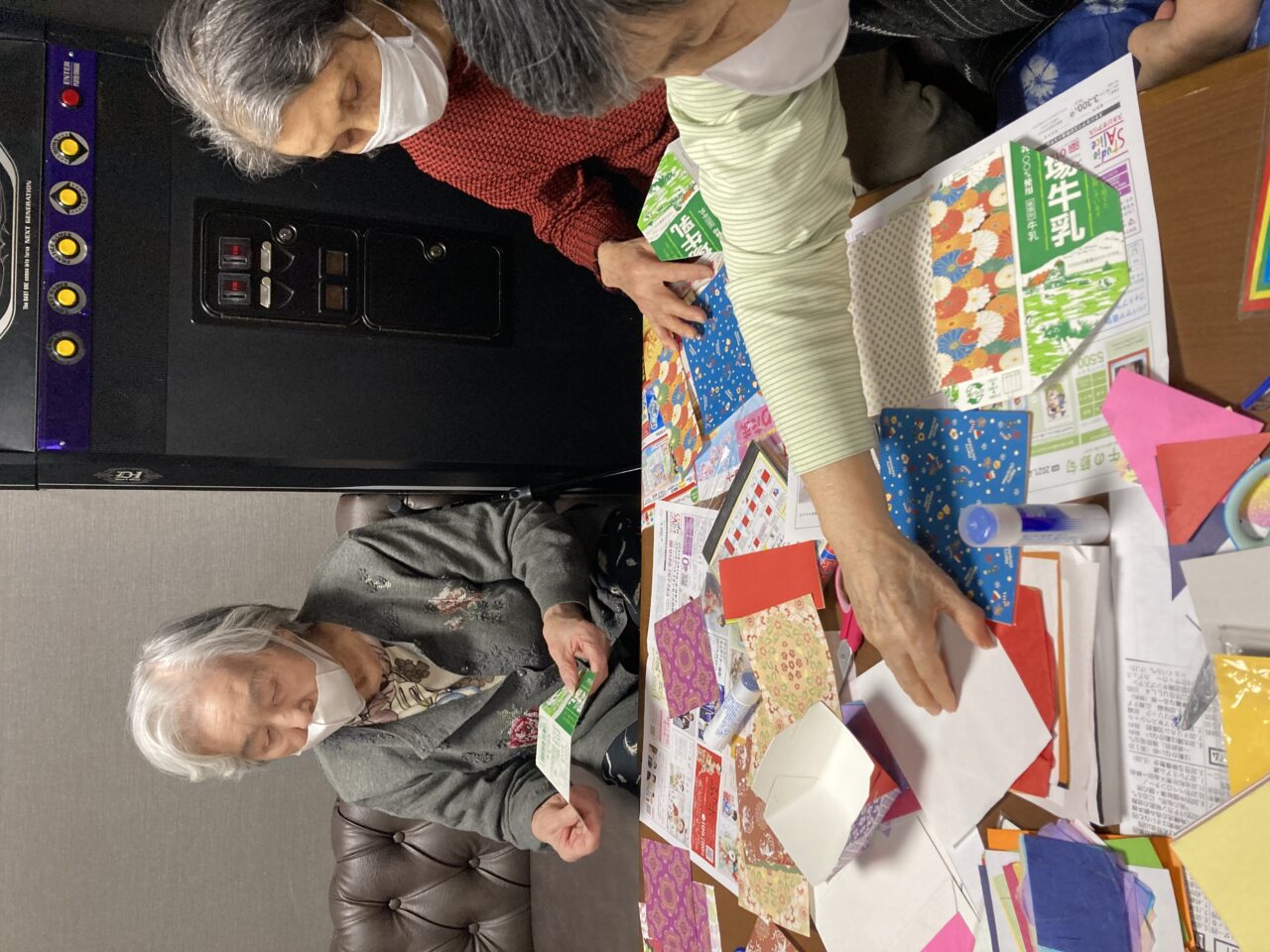 見本をみながら「どうやるの?」「素敵ね。これから作るの?」「この折り紙の色いいわね」とみなさん楽しみに作ろうとされていました!!
