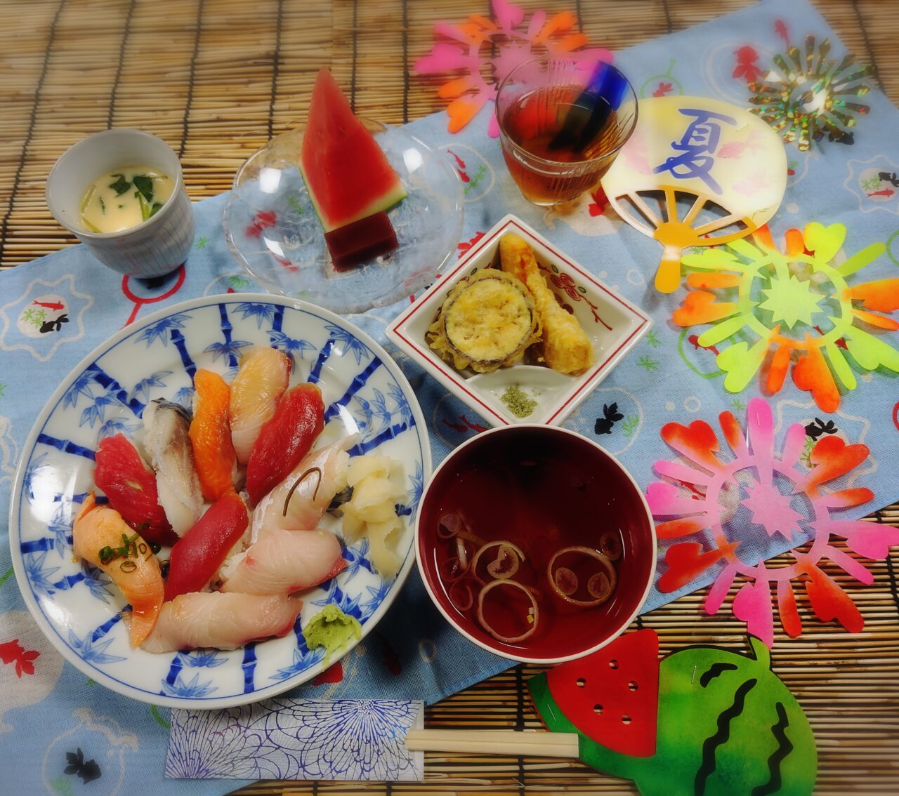お寿司を盛り付けているお皿もまた素敵ですね❗️❗️