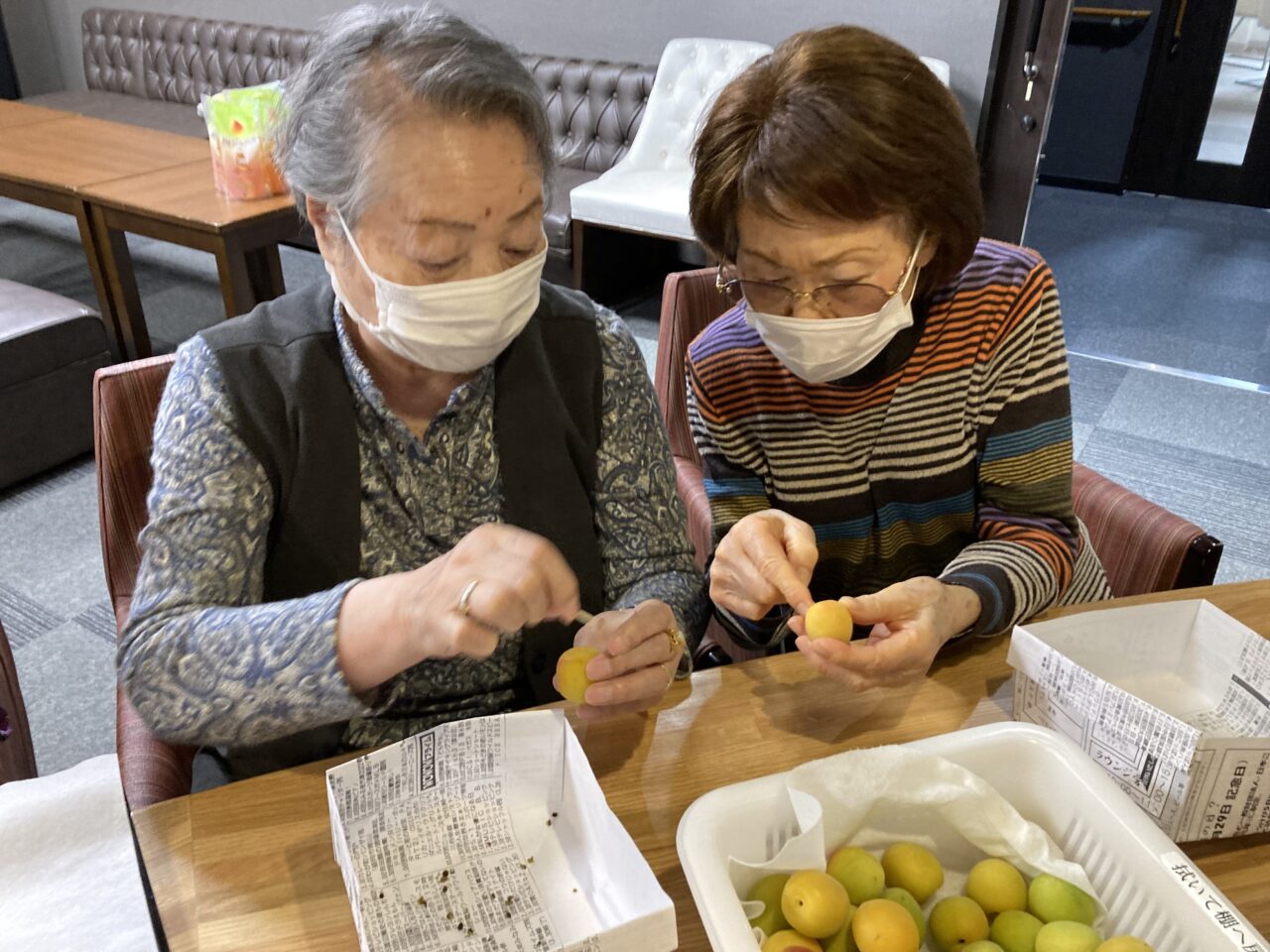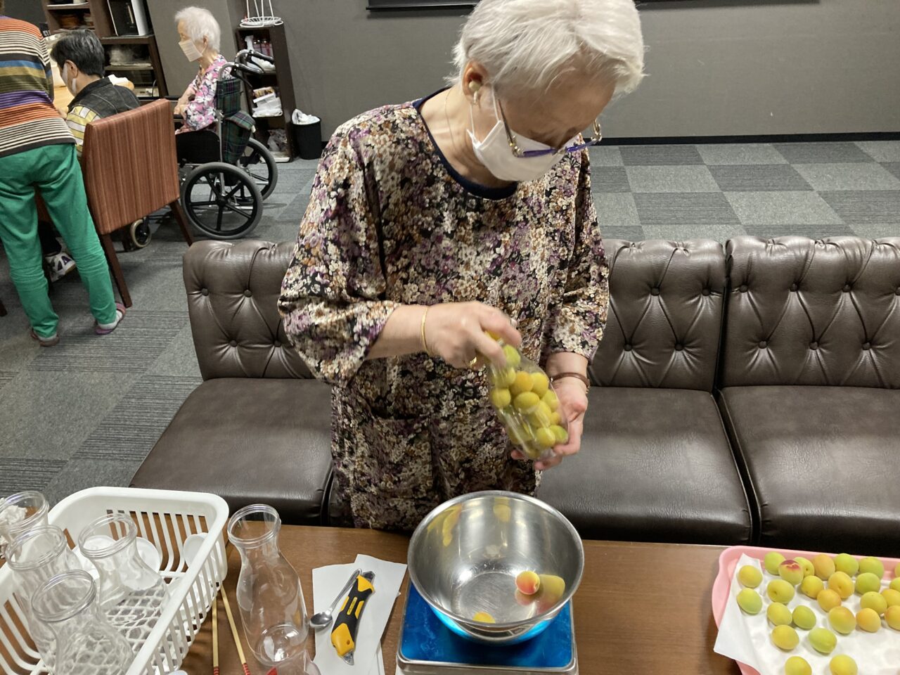午後からご利用者の皆さんと一緒に梅シロップづくりをしてみました?