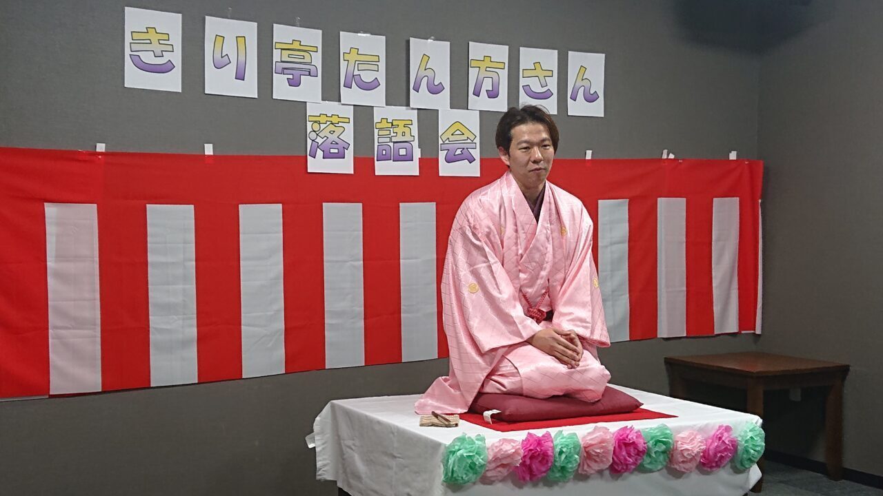 気持ちのいい五月晴れの今日、さらさ秋田駅前へ落語家のきり亭たん方さんが落語を演じに来て下さいました。
