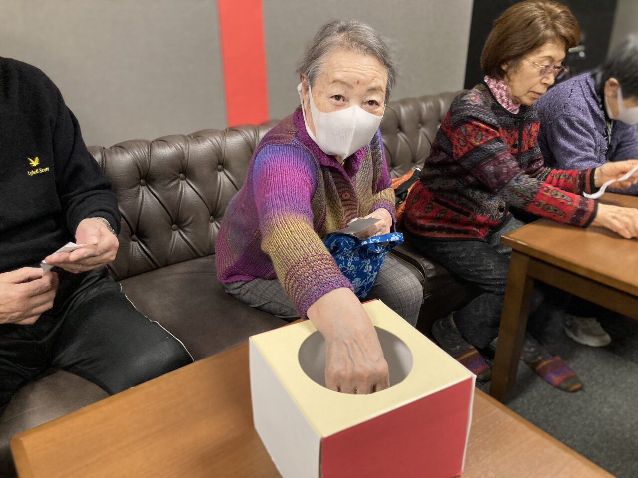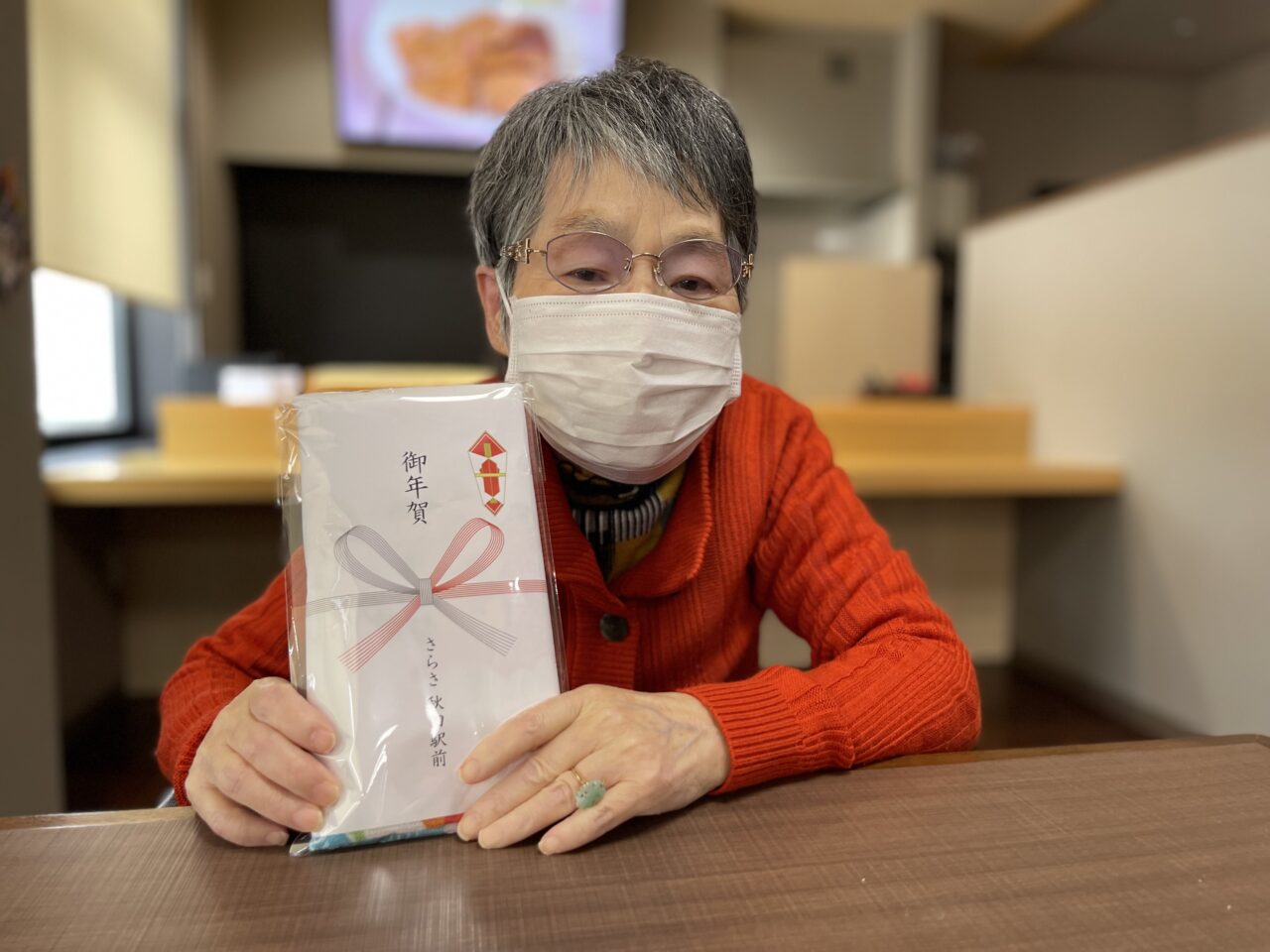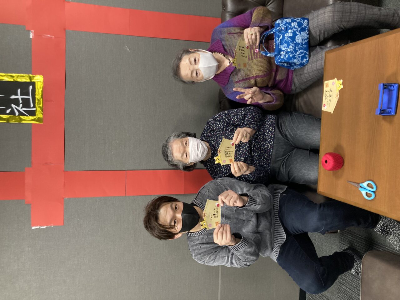 新年の挨拶をさせていただき、みなさんに年賀状兼抽選番号を配布いたしました。明日の抽選会が楽しみとみなさんお話くださいました( *´艸`)