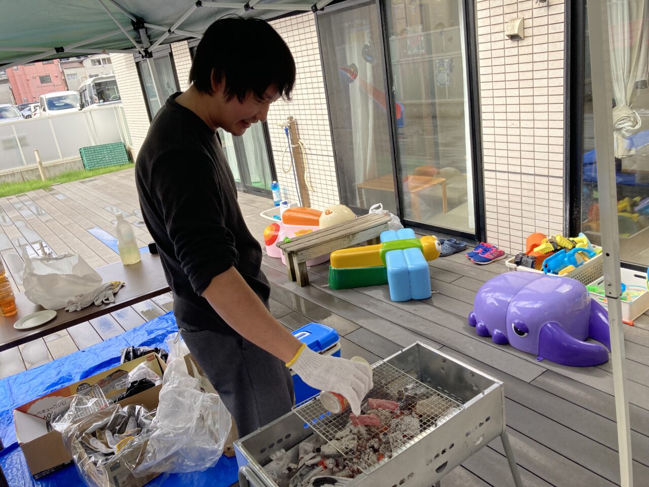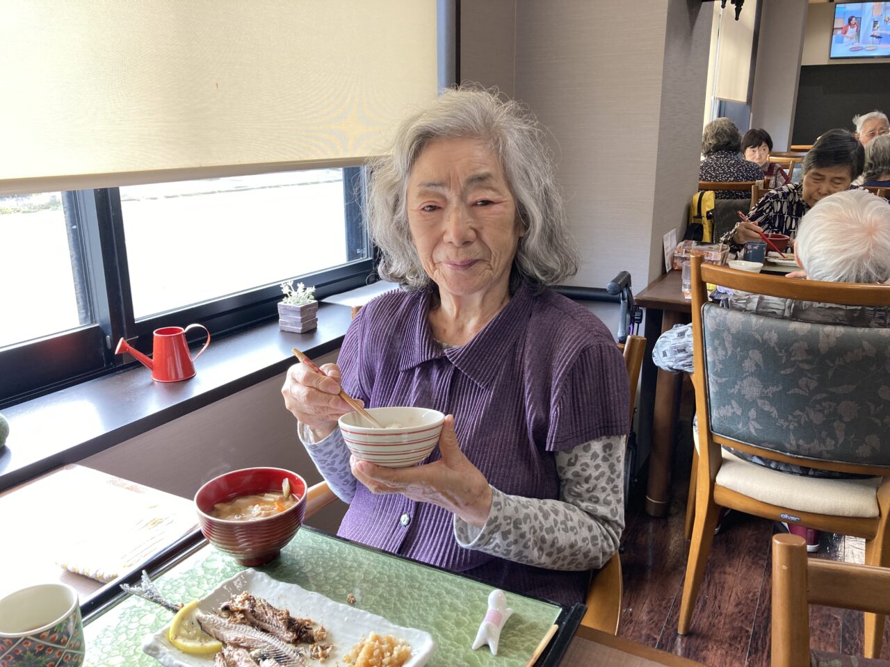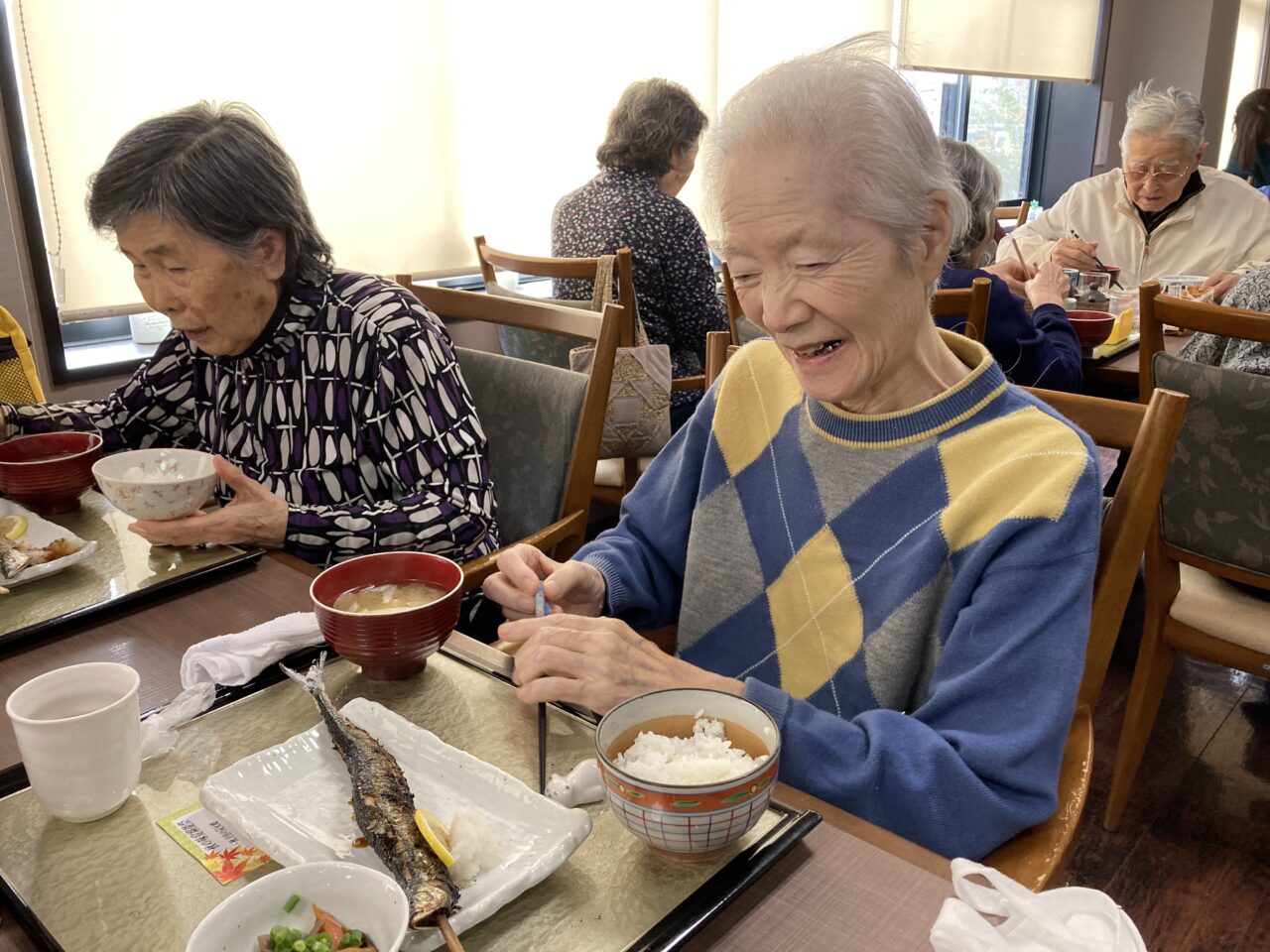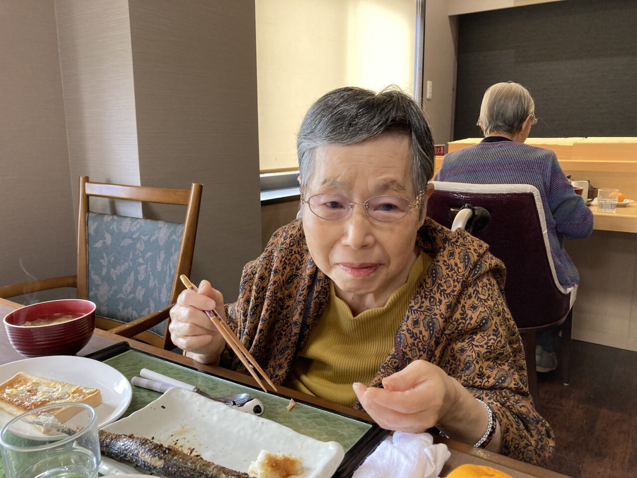 テラスで佑平パートナーと一富士さんで炭火で焼いた秋刀魚の良い臭いが館内まで?