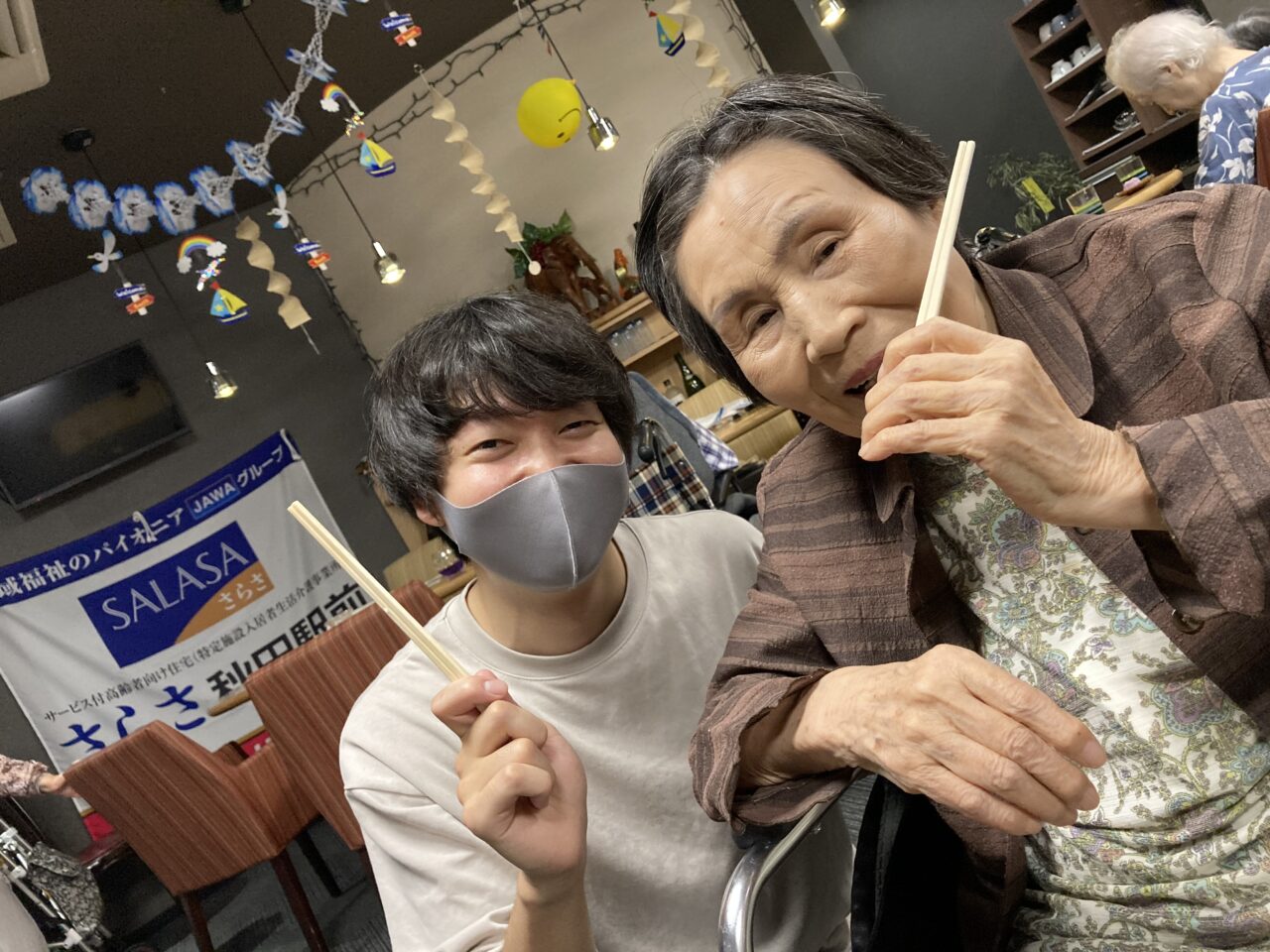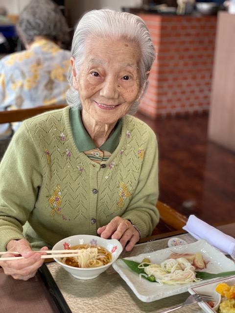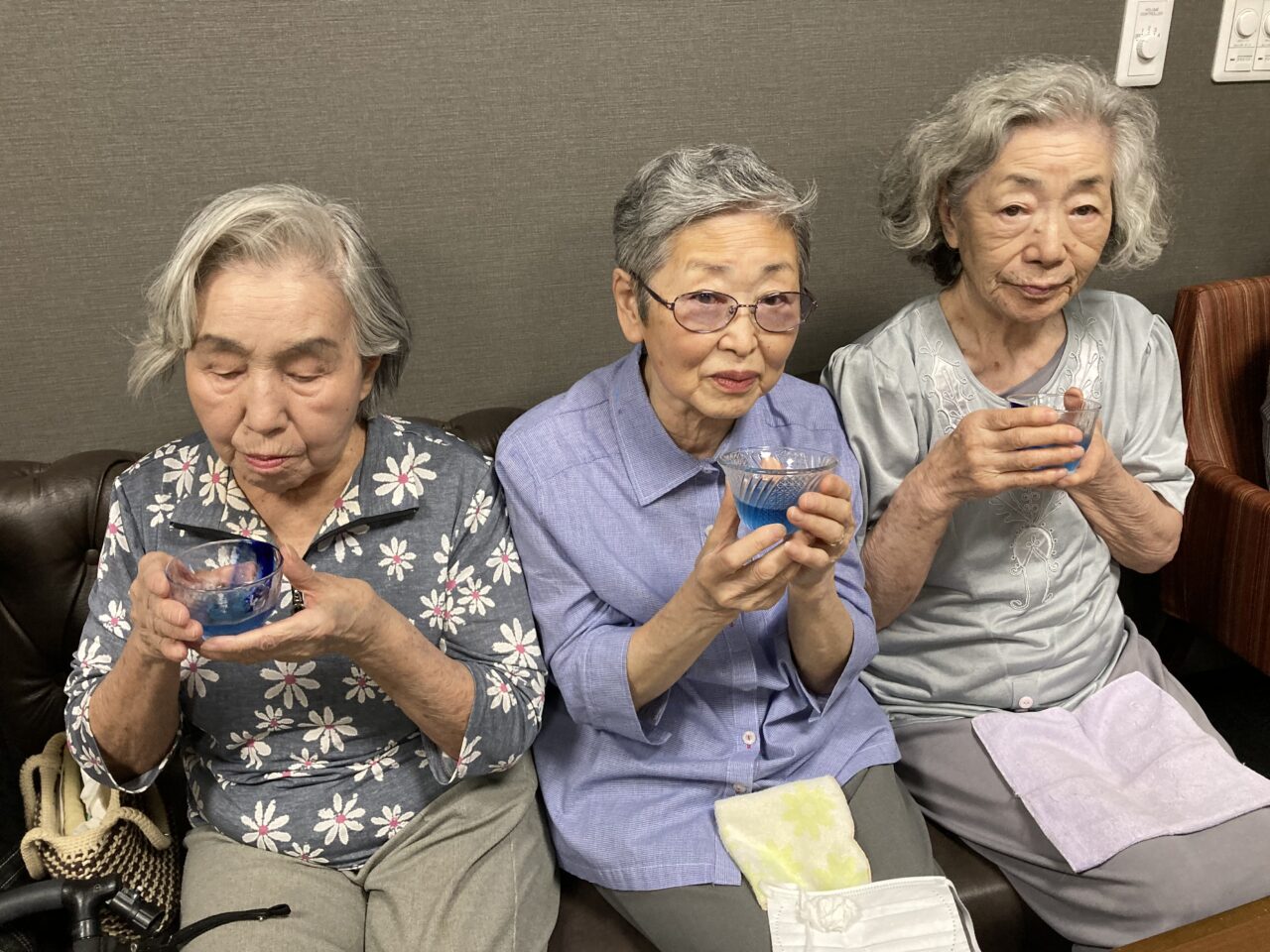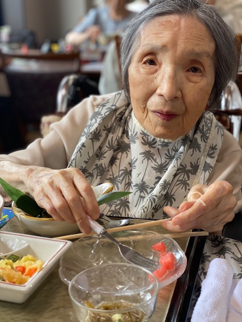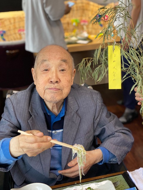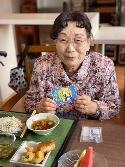 そんな日の昼食に七夕そうめんやサクサクの揚げたての天ぷら、じゅんさいとメロン&スイカと今日にピッタリのメニューで皆さん喜ばれていらっしゃいました☺?