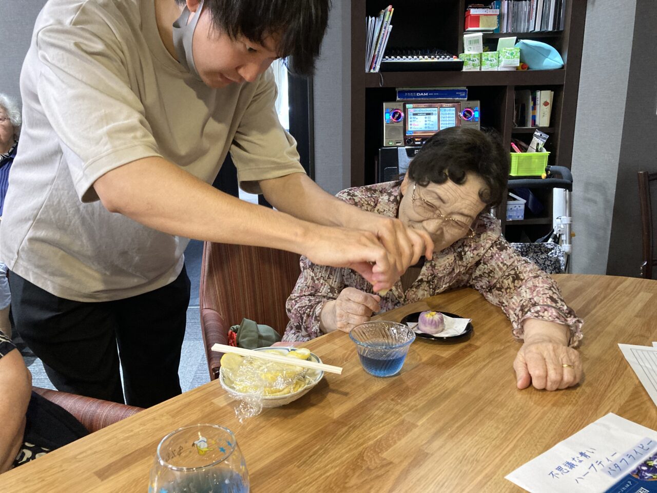 「これ何なの?」「こんなの初めて見た~」「綺麗な青だね~」と皆さん興味津々?