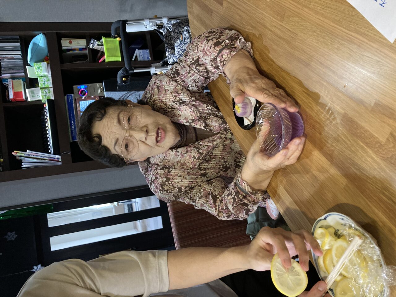 「レモンを入れたら飲みやすくなった!」「紫も綺麗でいいね~」と
